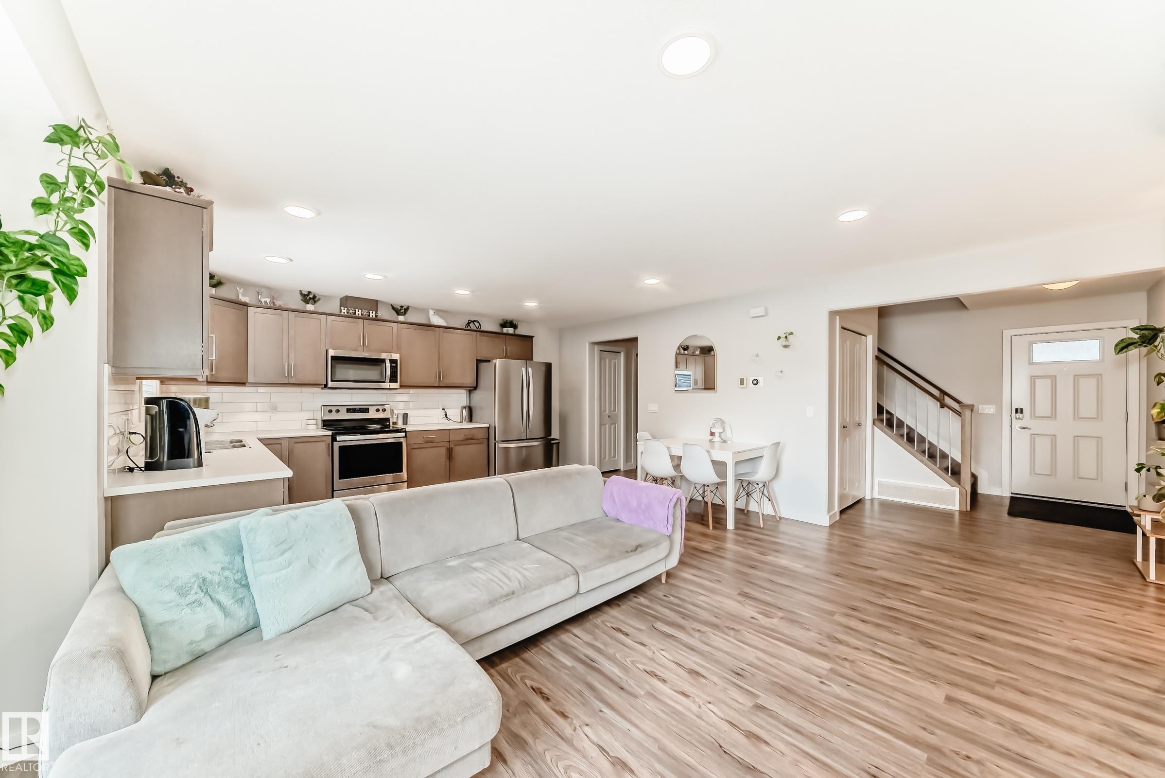 Above average townhouse, located on the west end of Leduc ,close to shopping in Leduc Common. This 3 bedroom 2.5 bath home has central A/C, an open concept main floor plan that offers a great room, kitchen and dining area as well as 2 piece bathroom.Hardwood flooring, stainless steel appliances are included.The upper level master bedroom has 4 piece en-suite and walk-in closet. Two additional bedrooms, 4 piece bathroom and laundry room complete this level. The basement is open for your development.