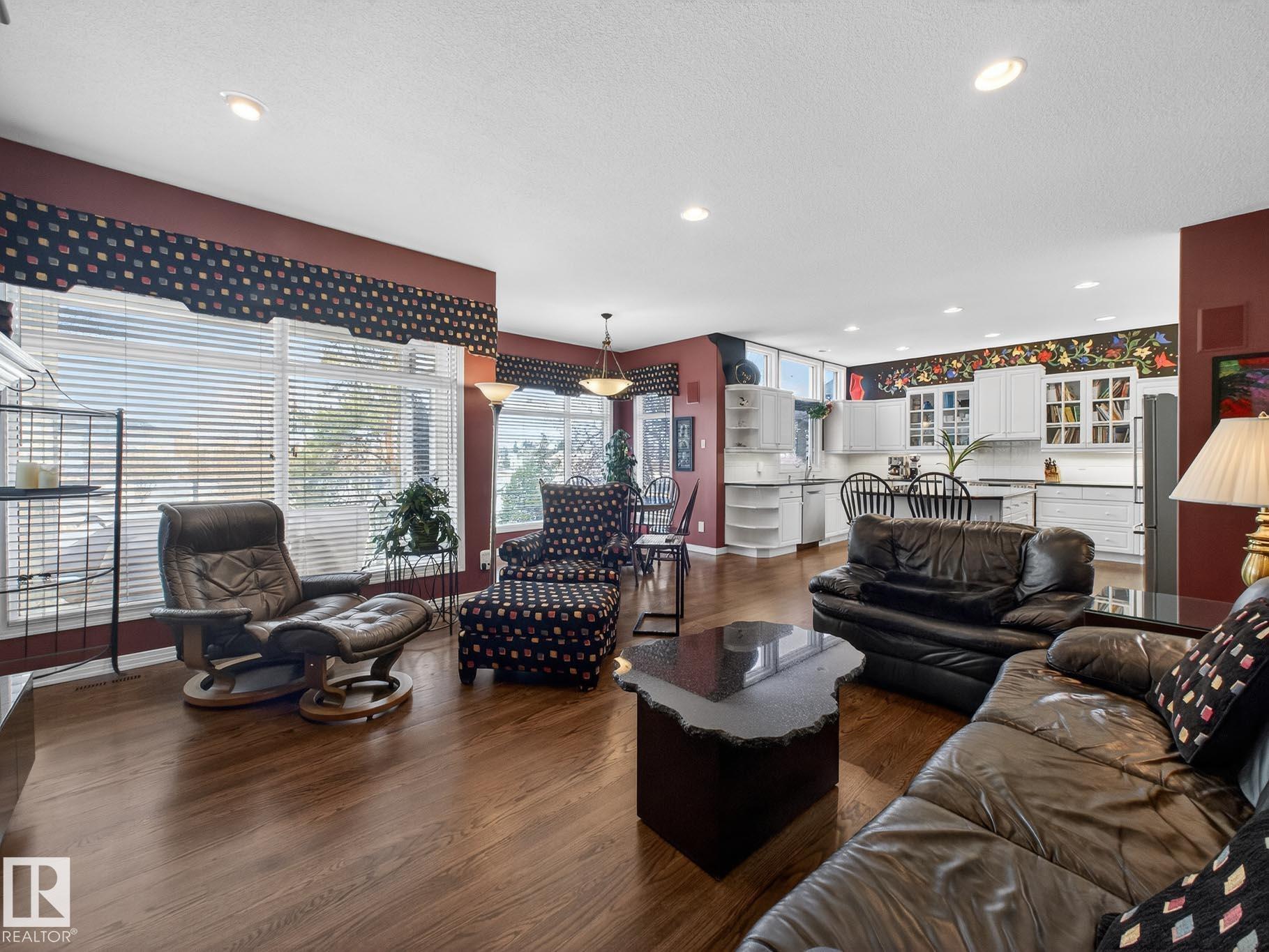 STUNNING LUXURY WALKOUT backing onto LAKE in Twin Brooks! This beautifully maintained 4,540+sf 6-bedroom home offers timeless elegance and warm inviting feel.Step into your grande entrance opening to a gorgeous living room/fireplace and soaring ceilings,perfectly paired/an elegant dining area featuring custom built-in cabinetry.The main floor also includes versatile fourth bedroom.Just steps down you’ll find your stunning great room/fireplace across from the impeccably updated kitchen-both designed for co...