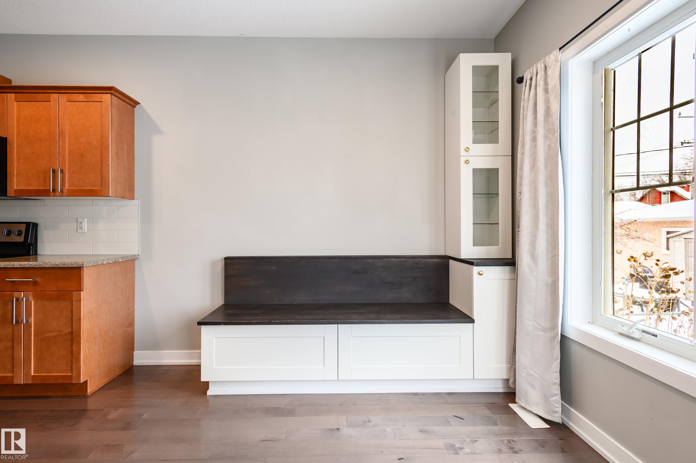 Charming! 1546 sq.ft 2-storey, 3+1 bedroom, 3.5-bath home on a beautiful tree-lined street in Alberta Ave! Main floor features: hardwood floors, a front den, perfect for a home office! 2-piece bath, and open-concept kitchen, dining, and living area w/large windows overlooking the fully fenced backyard w/ private deck. Kitchen offers stainless steel appliances, ample cabinetry and a large walk-in pantry. Functional dining room features: convenient built-in bench. Cozy living room also has a versatile built-i...