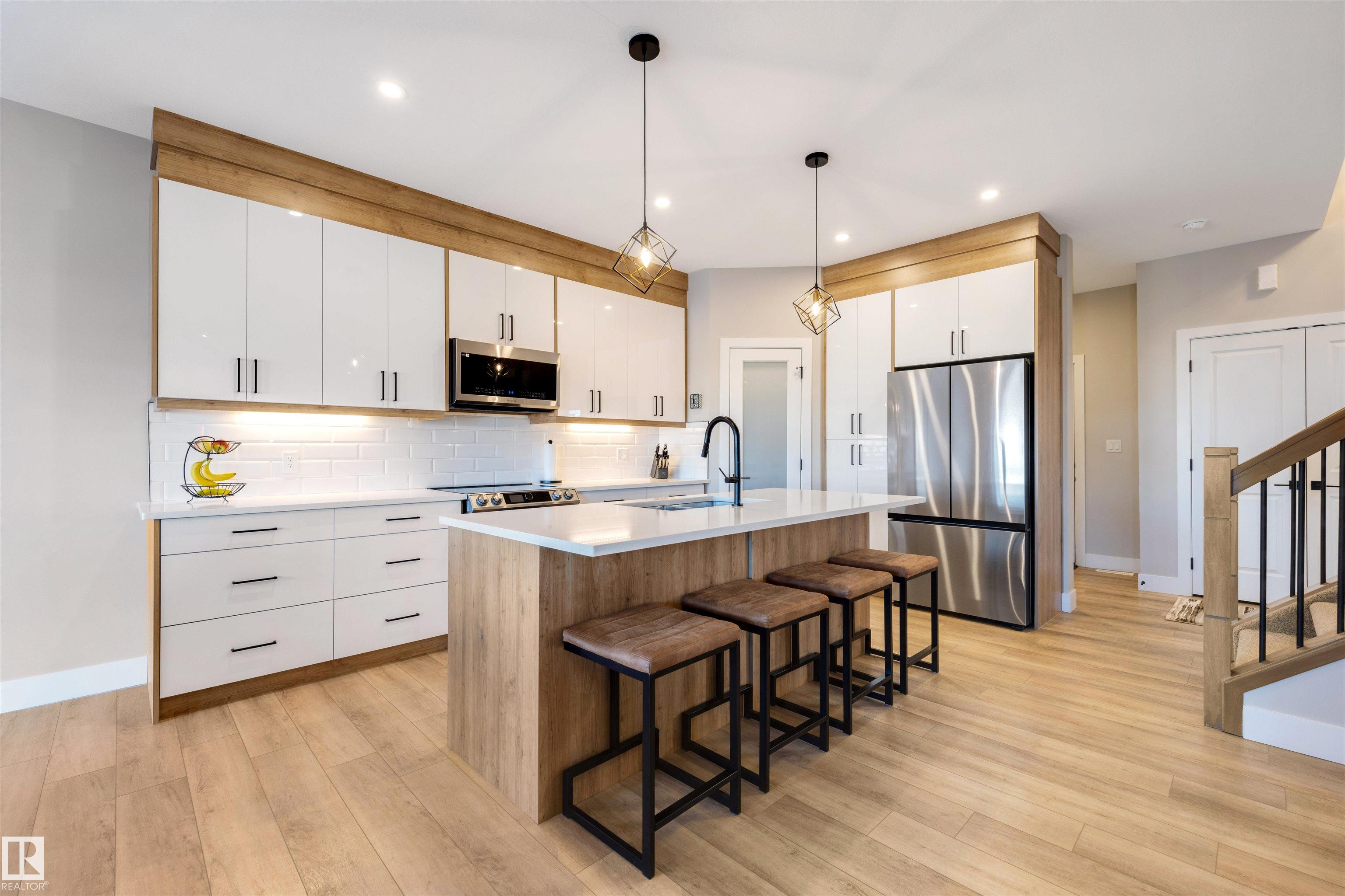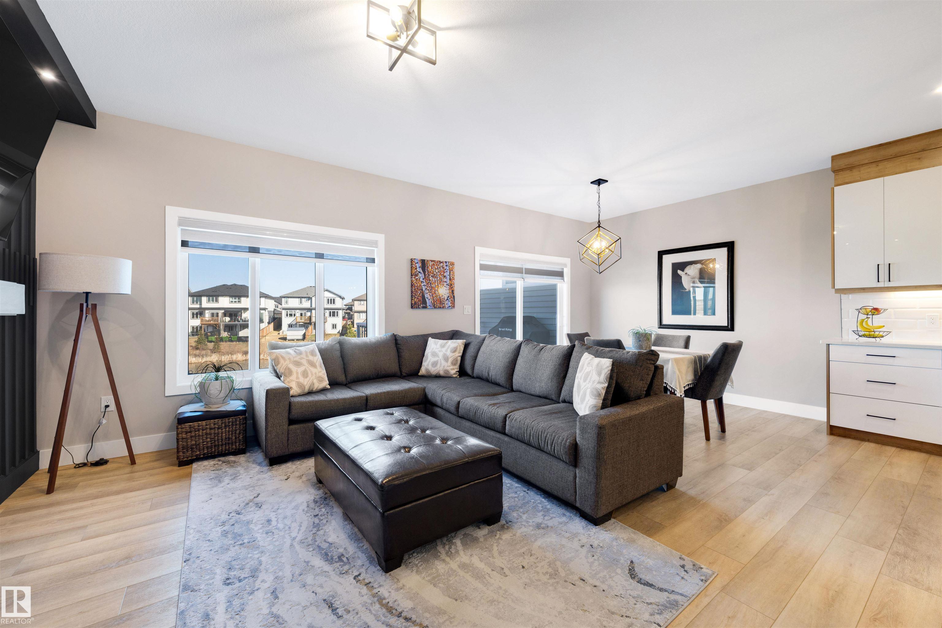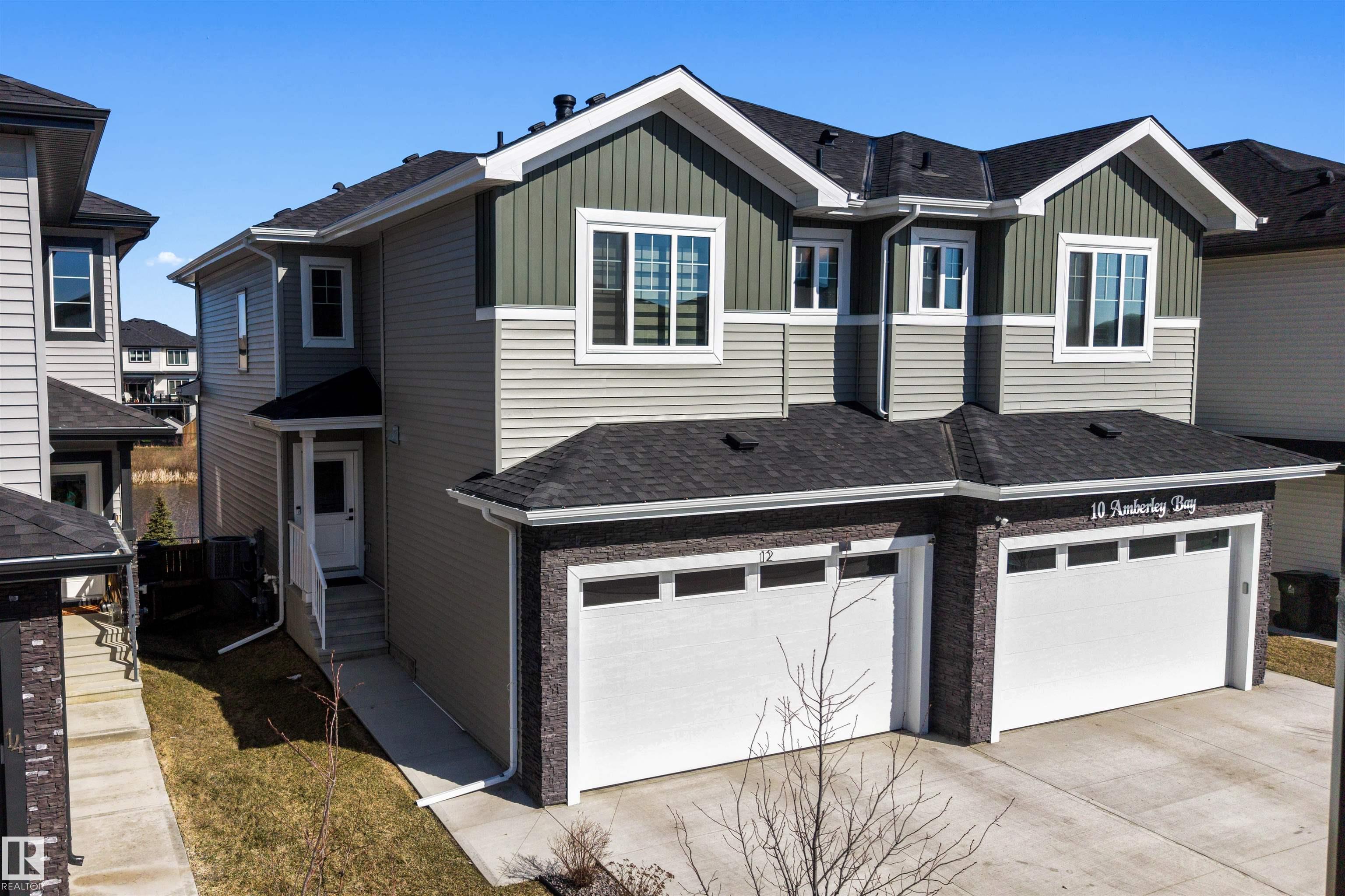 This modern half-duplex with AC and double attached garage features 3 beds, 2.5 baths, and a walk-out basement backing onto a pond. Impeccable move-in ready condition! The open concept kitchen is sure to impress with its quartz countertops, stainless steel appliances, corner pantry, and ample counter & storage space. Beyond the dining area lies the patio doors to your rear balcony with stunning views of the water. Relax in the living room, upstairs in the large bonus room, or in your primary suite with walk...