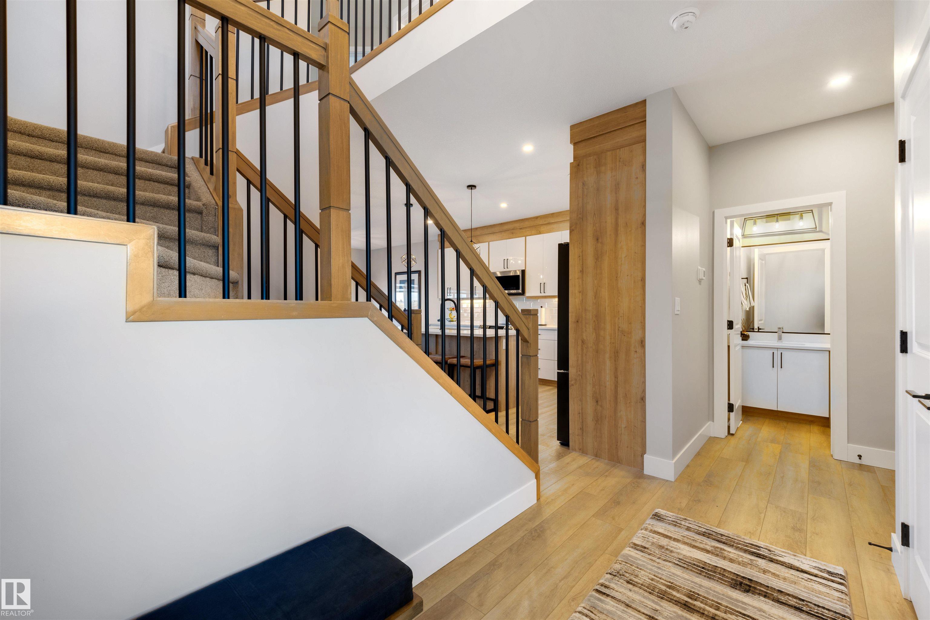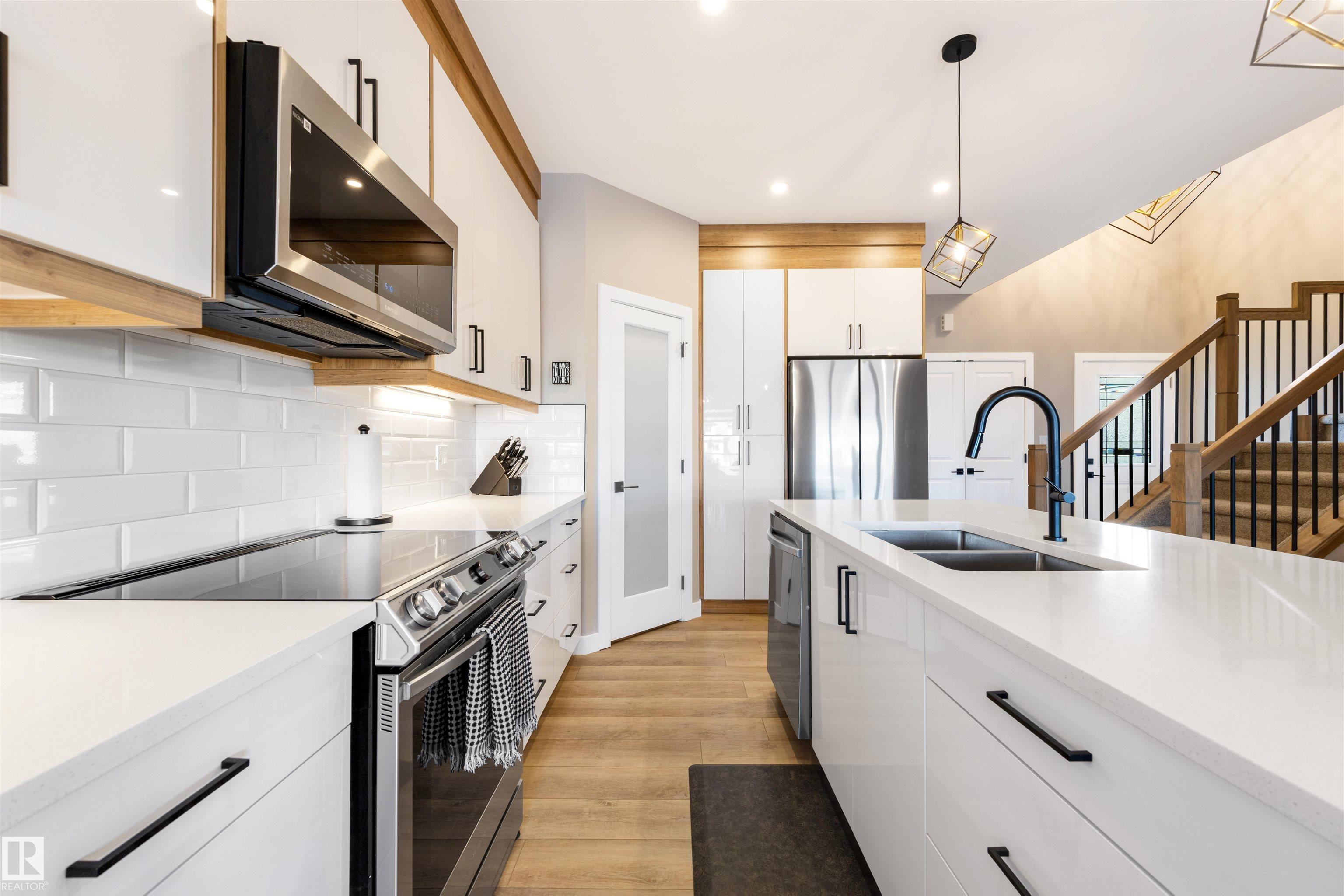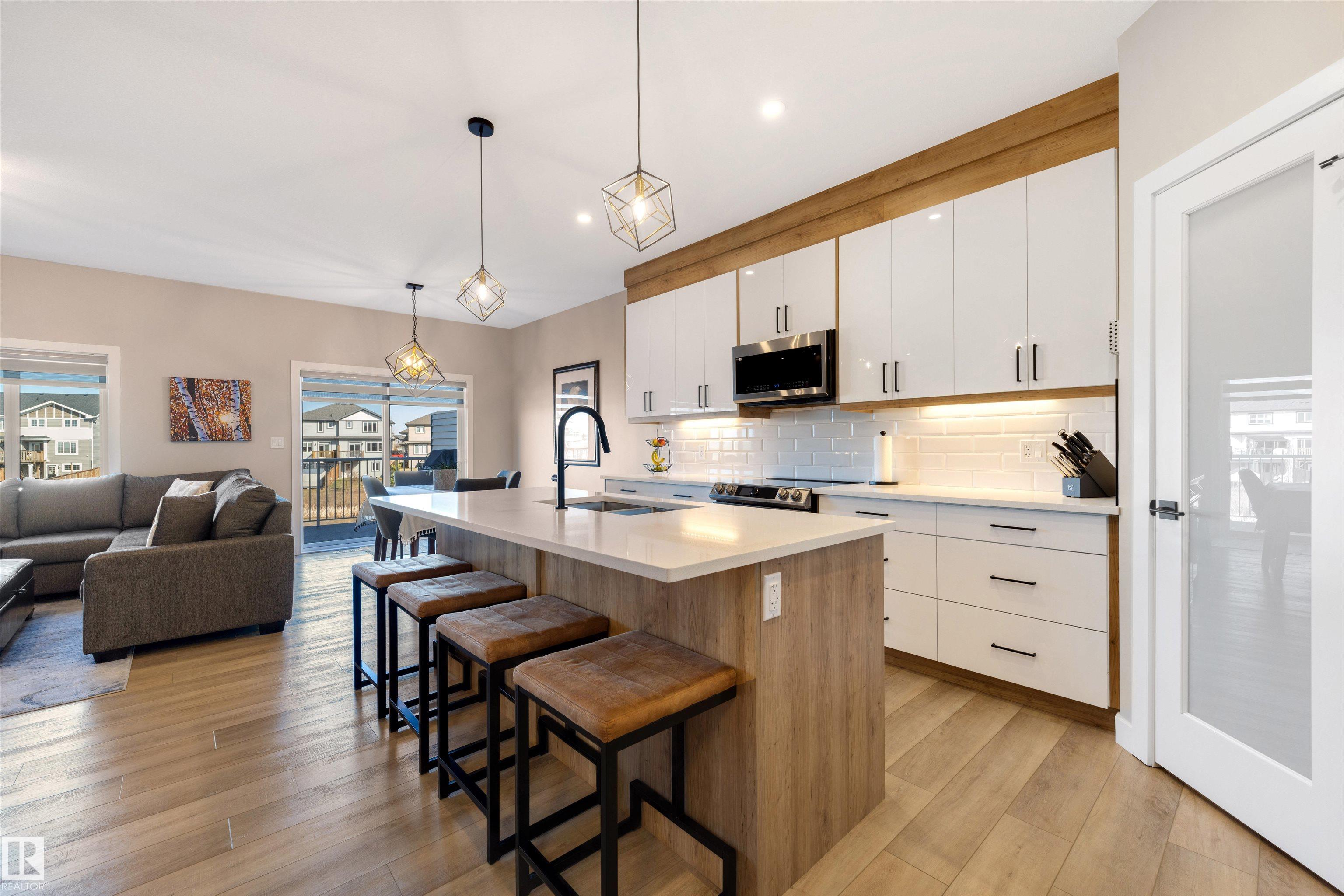 This modern half-duplex with AC and double attached garage features 3 beds, 2.5 baths, and a walk-out basement backing onto a pond. Impeccable move-in ready condition! The open concept kitchen is sure to impress with its quartz countertops, stainless steel appliances, corner pantry, and ample counter & storage space. Beyond the dining area lies the patio doors to your rear balcony with stunning views of the water. Relax in the living room, upstairs in the large bonus room, or in your primary suite with walk...