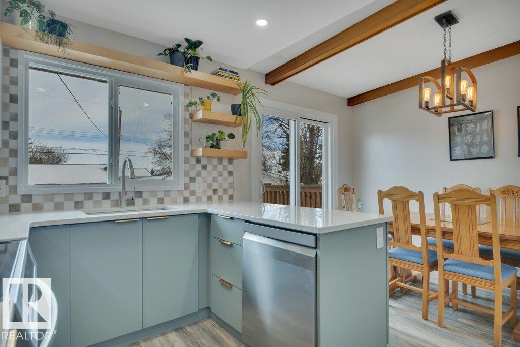 Great package offering major value with most big ticket items already done. Excellent location in Balwin. 1073 sq ft bungalow with 2 + 2 bedrooms + den, classic L shaped living room dining room. Lots of Renovations in recent years include: Complete Kitchen reno, main bathroom, windows and patio doors, Shingles 2021, flooring, paint, trim & baseboards, light fixtures, interior doors, furnace 2016, hot water tank 2016, A/C, & more. Kitchen reno features new cabinets and extra cabinets, quartz counter tops, re...