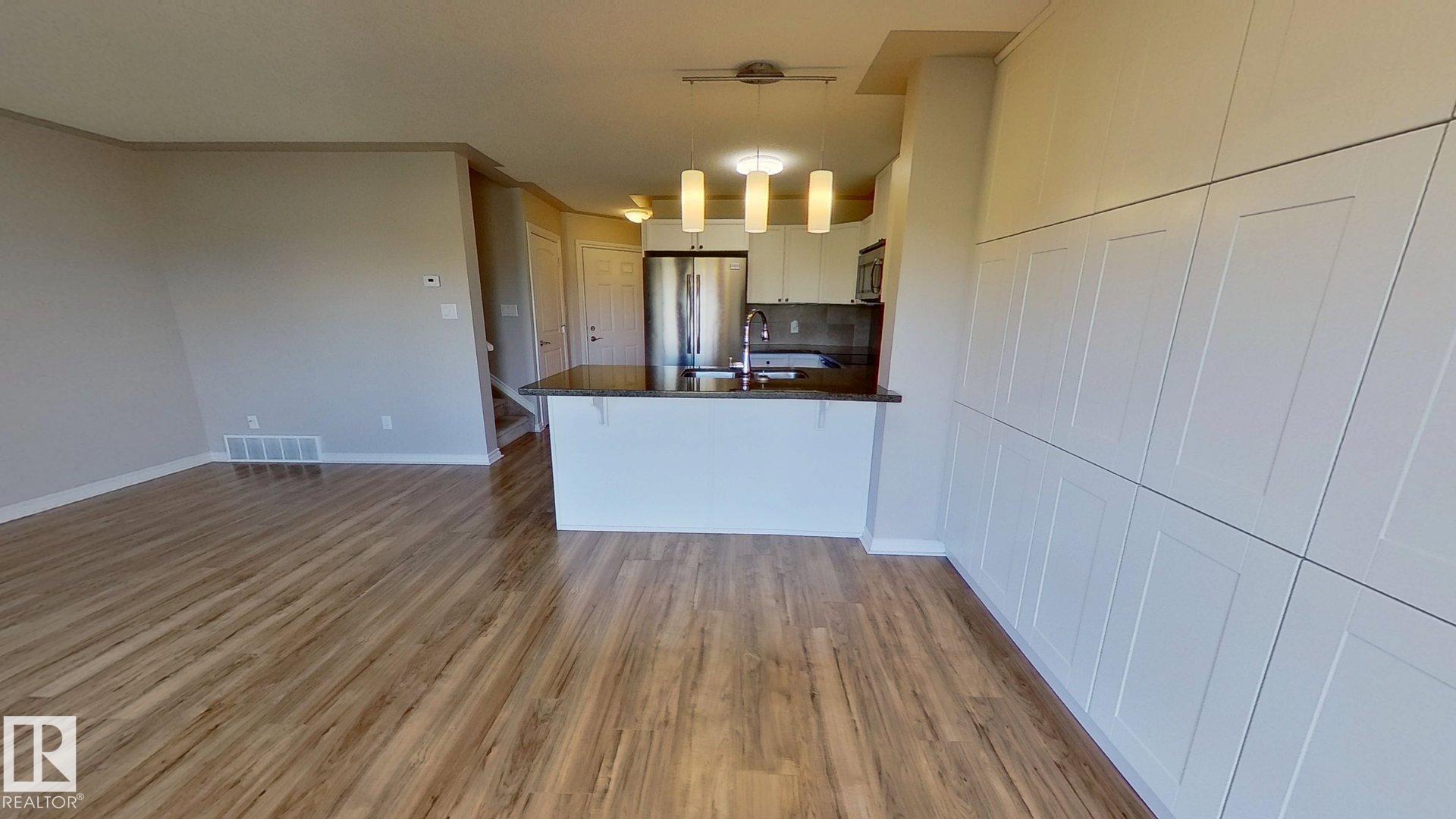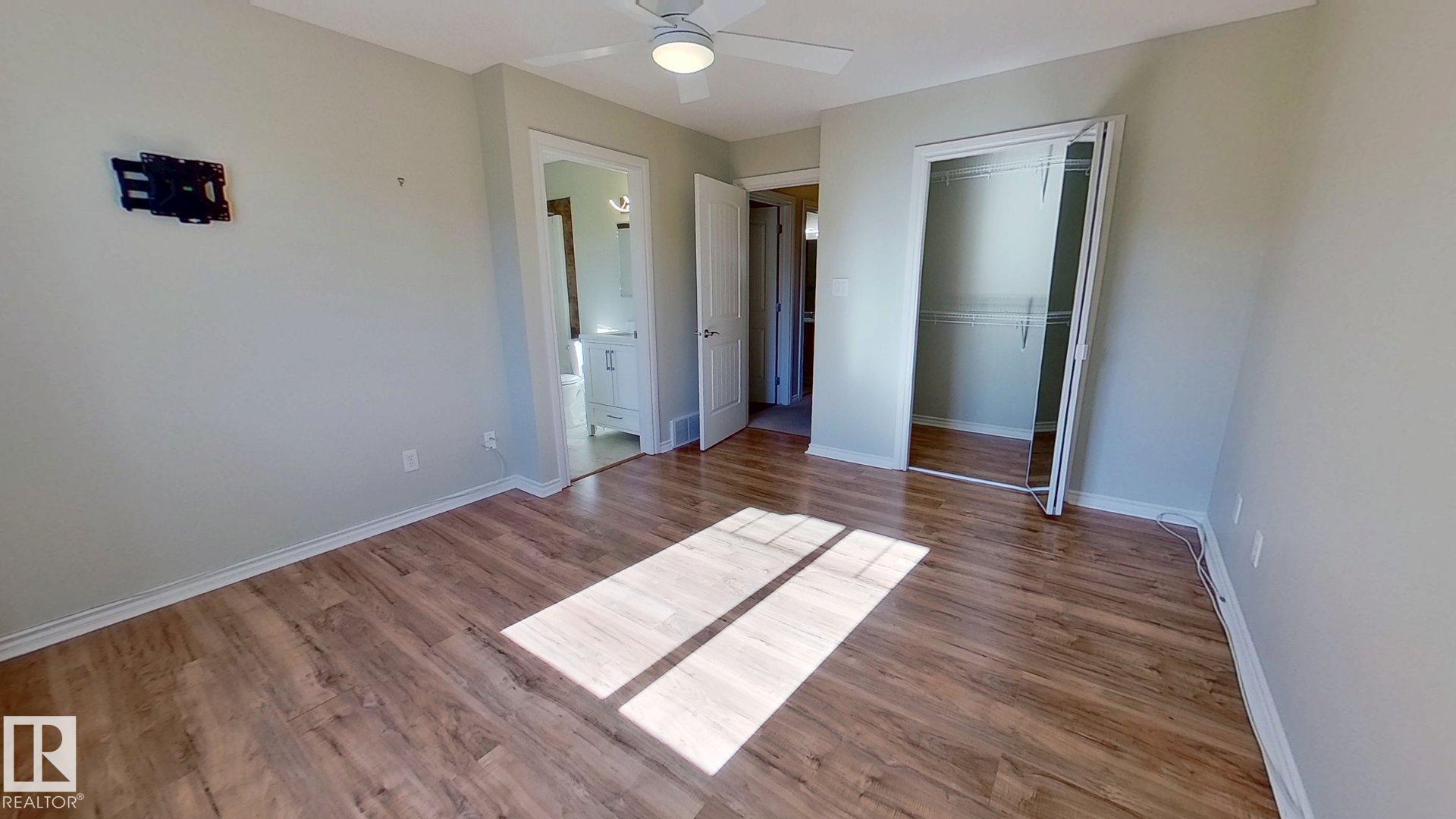 This 1,253 Sq Ft 2 storey townhouse has 3 bedrooms and 2.5 bath. On the main floor is a half bath, living room, dining area, and a kitchen with tons of cabinet space. On the upper level is 2 bedrooms, laundry room, full bath, and a spacious master bedroom with a walk in closet and an ensuite. This unit also has a deck looking out onto a beautiful green space. Which includes one of Leduc's community garden locations.