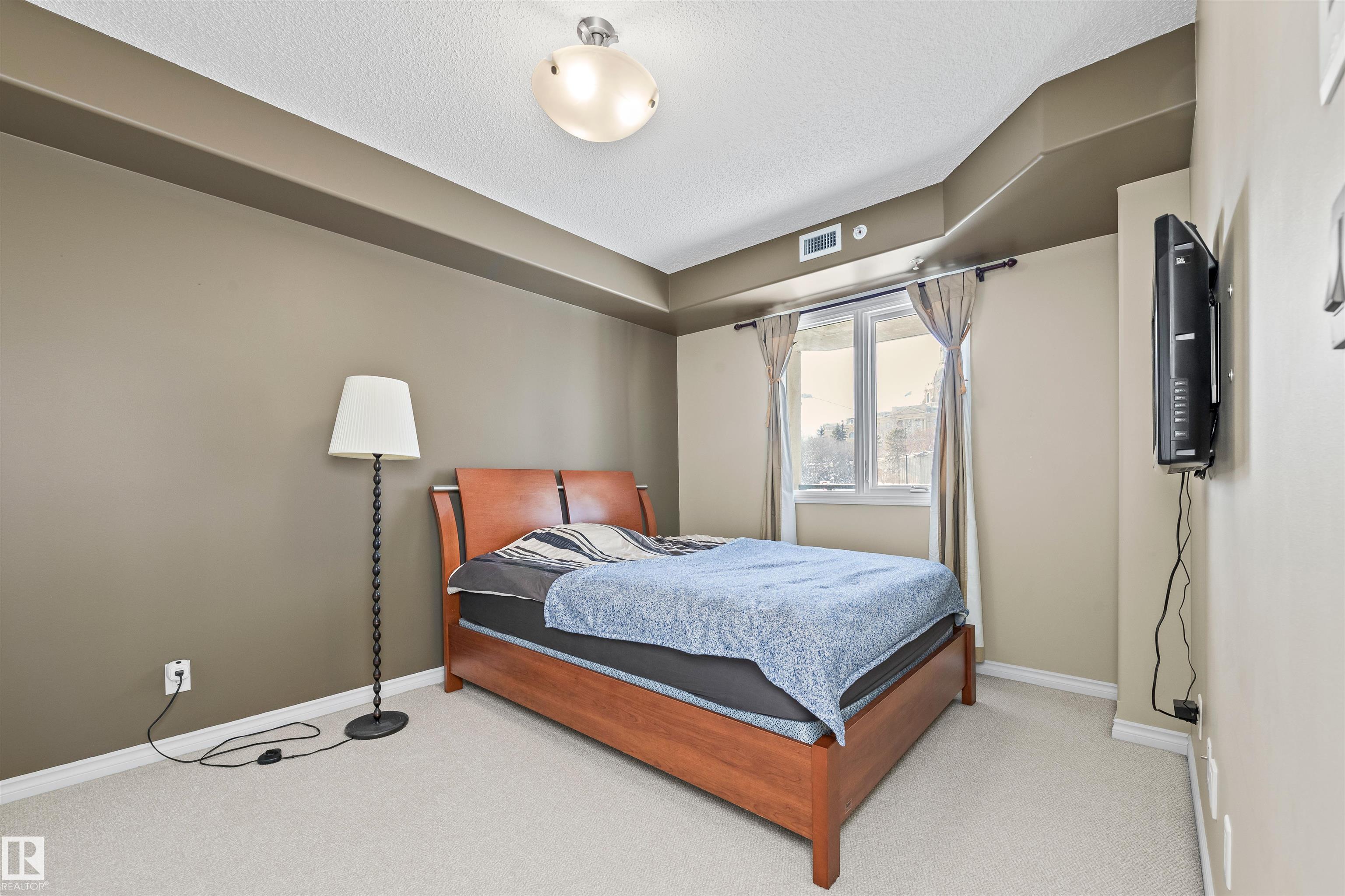 Incredible Value in an Unbeatable Location! Welcome to this beautifully maintained and move-in-ready 2-bedroom condo just steps from the Legislature Grounds, the River Valley, and walking distance to the Downtown core, Ice District, LRT, and the University of Alberta. The perfect blend of convenience, style, and comfort—ideal for first-time buyers or investors. This impressive unit features cork and tile flooring throughout the main living areas with plush carpeting in the bedrooms. The modern kitchen offer...
