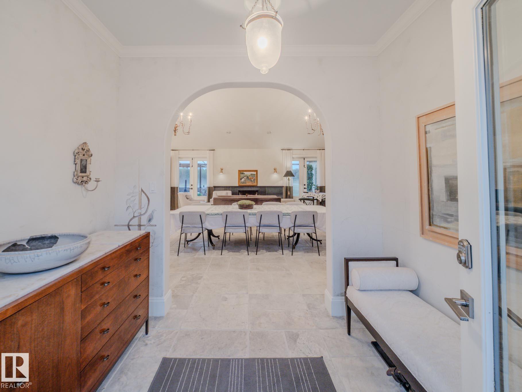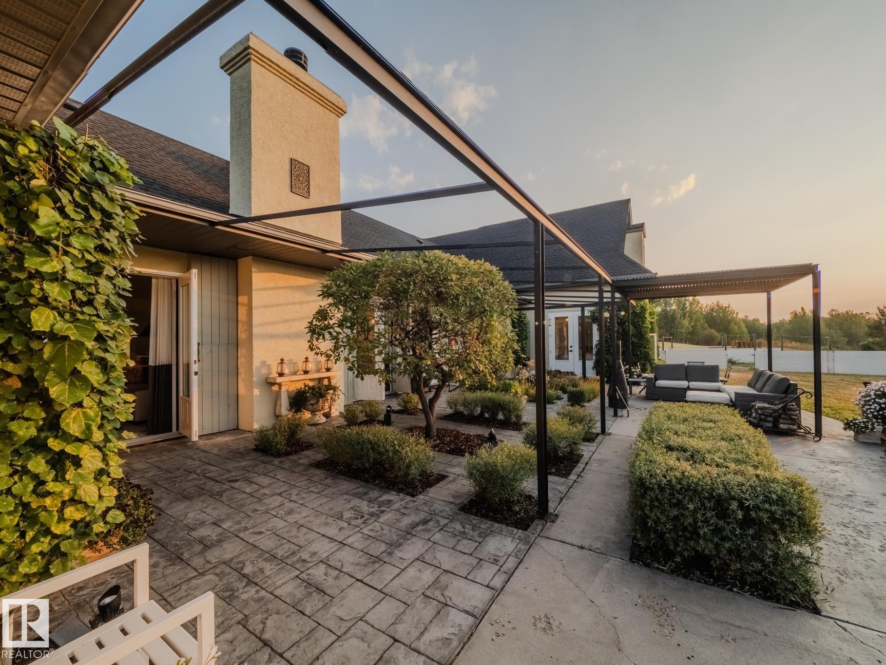 MODERN EUROPEAN MASTERPIECE....NOT A DETAIL OVERLOOKED.....20 ACRES......10 MIN TO THE CITY.... COLD ROLLED STEEL/HERRINGBONE TILES/OLD WORLD CRAFTSMANSHIP....WORDS CANNOT DESCRIBE THE PATIO....~!WELCOME HOME!~ A world class acreage in the heart of Strathcona County, one of a kind design w/accents and decor curated from around the globe... Greeted by "hand blasted" heated travertine floors... something you'd expect from a villa in the south of France. Soaring ceilings, beams & a dramatic great room is just ...