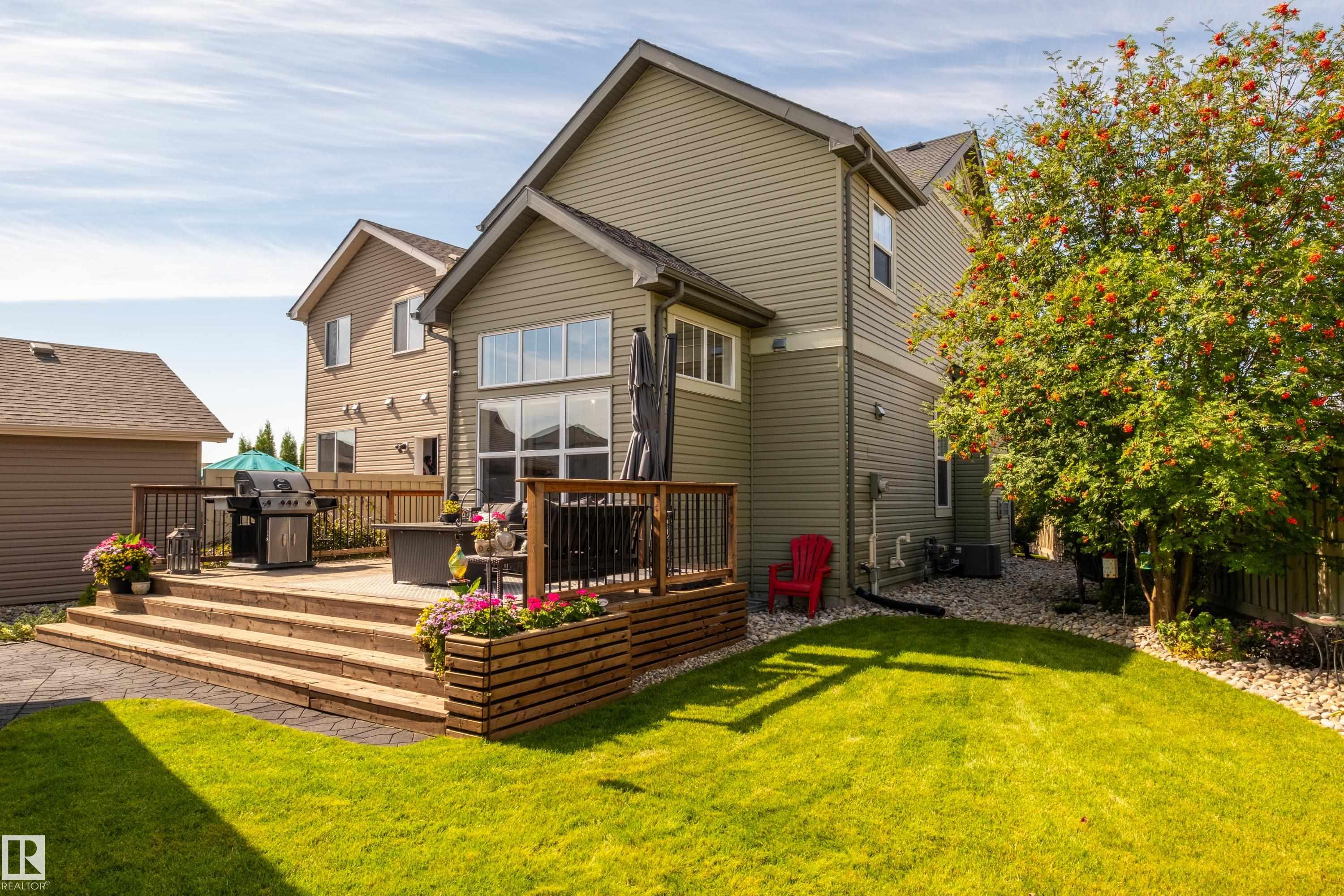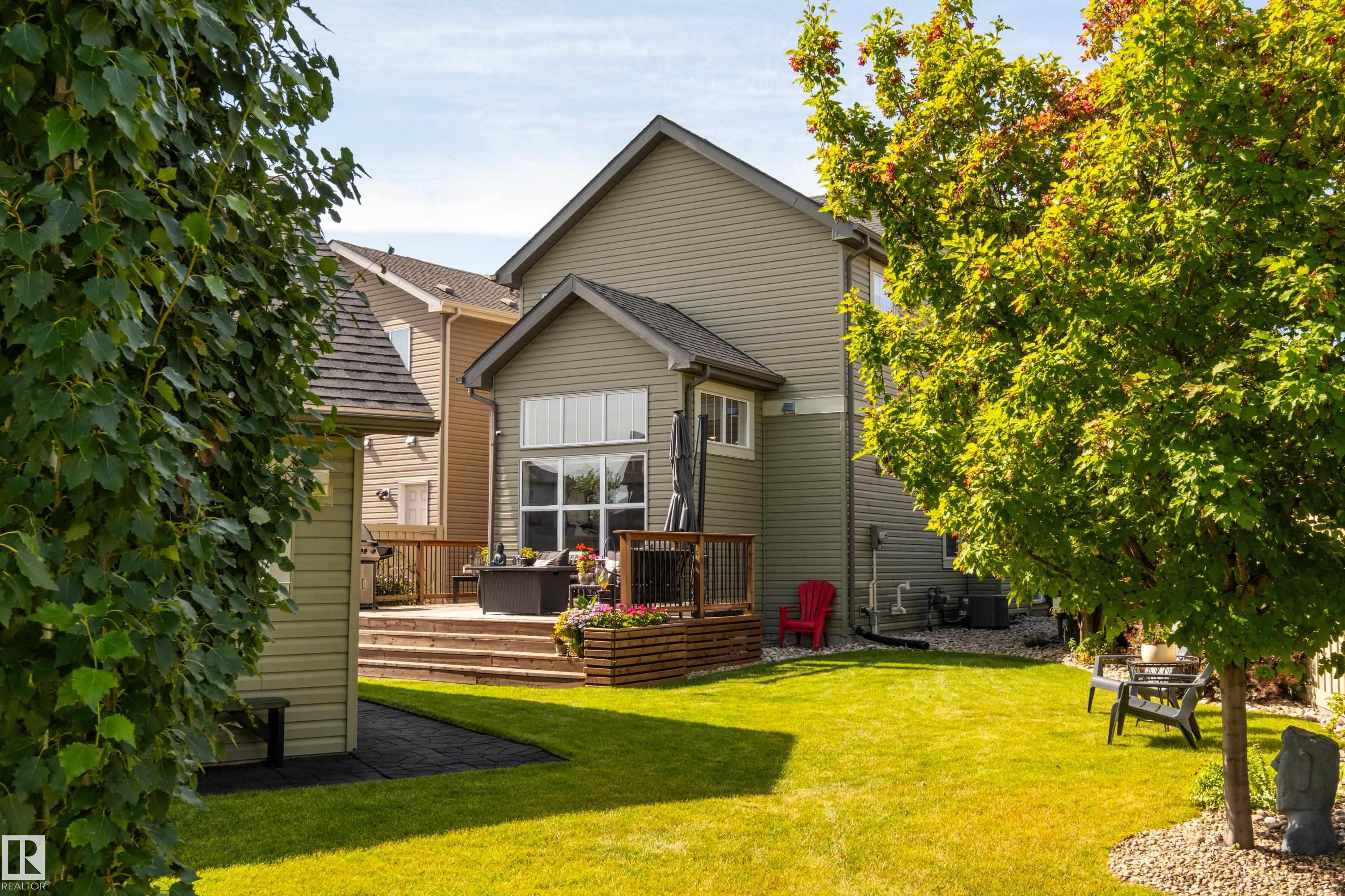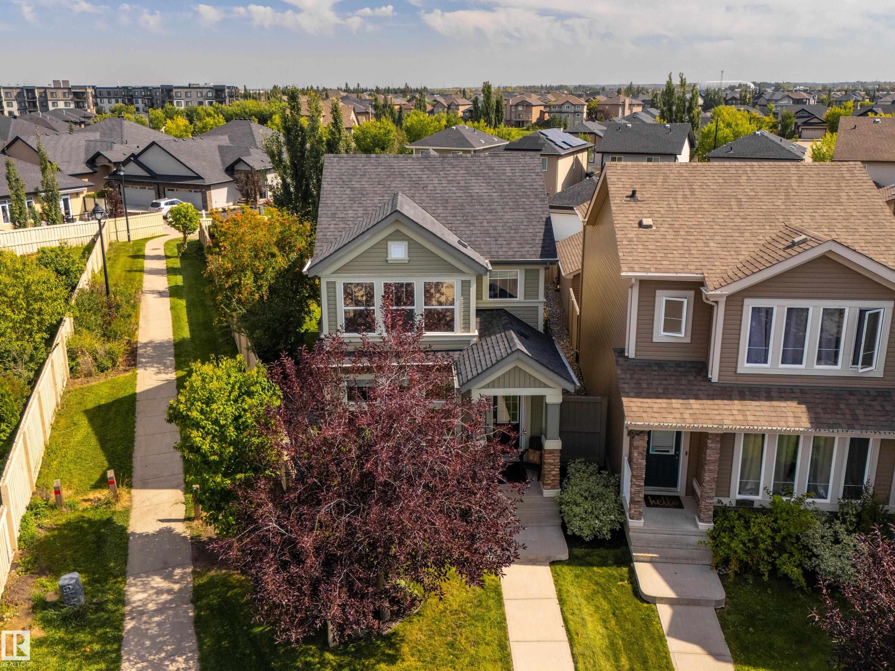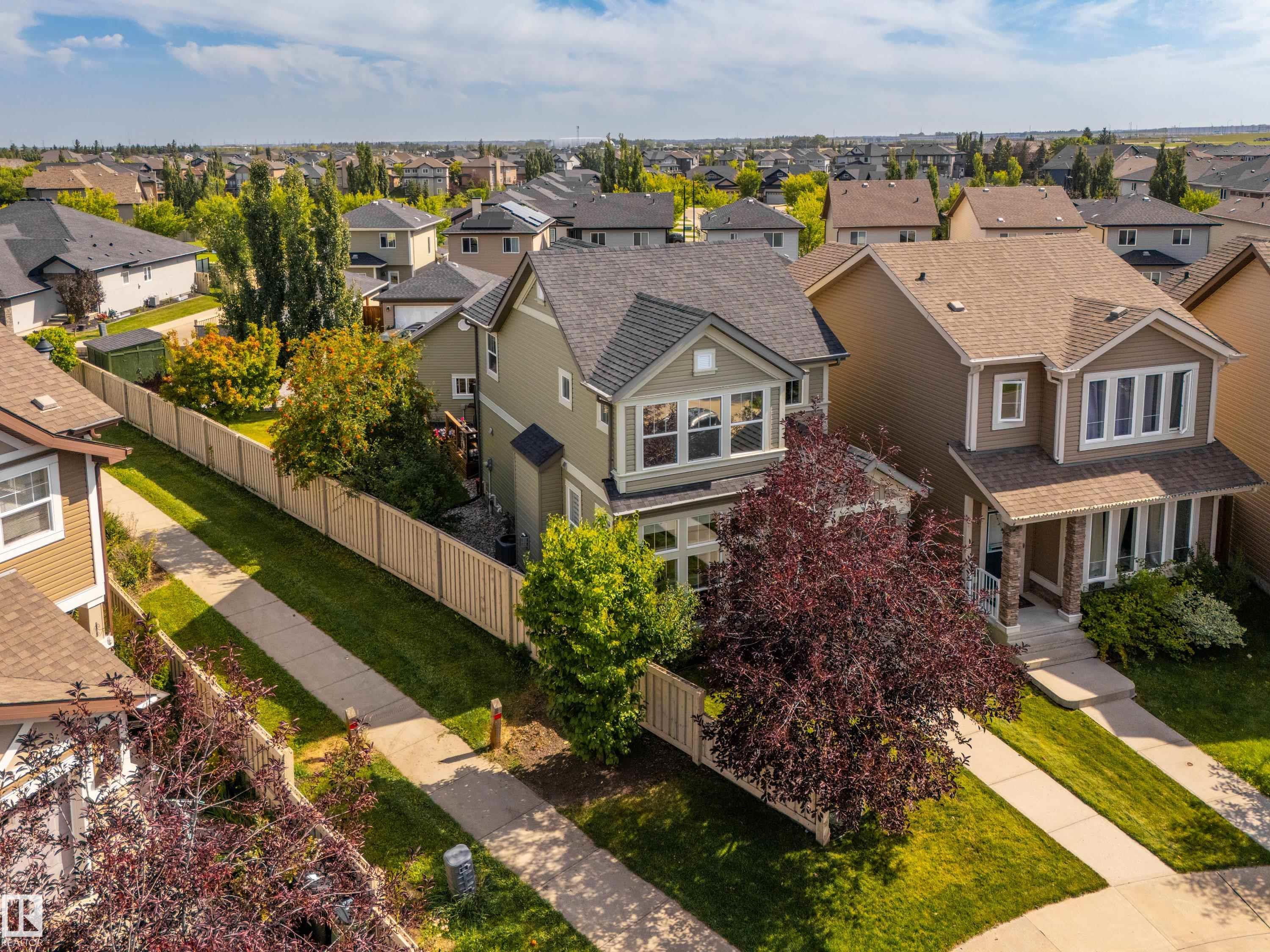 Welcome to this stunning 2-storey home in the heart of Allard, thoughtfully designed for modern living. With 3 spacious bedrooms upstairs and 2.5 baths, it offers a perfect balance of style and function. The main floor is highlighted by upgraded cork flooring, a cozy gas fireplace, and expansive windows that fill the space with natural light. The partially finished basement provides additional living space with an impressive open-to-above design. Outside, the pie-shaped yard is a private retreat—fully lands...