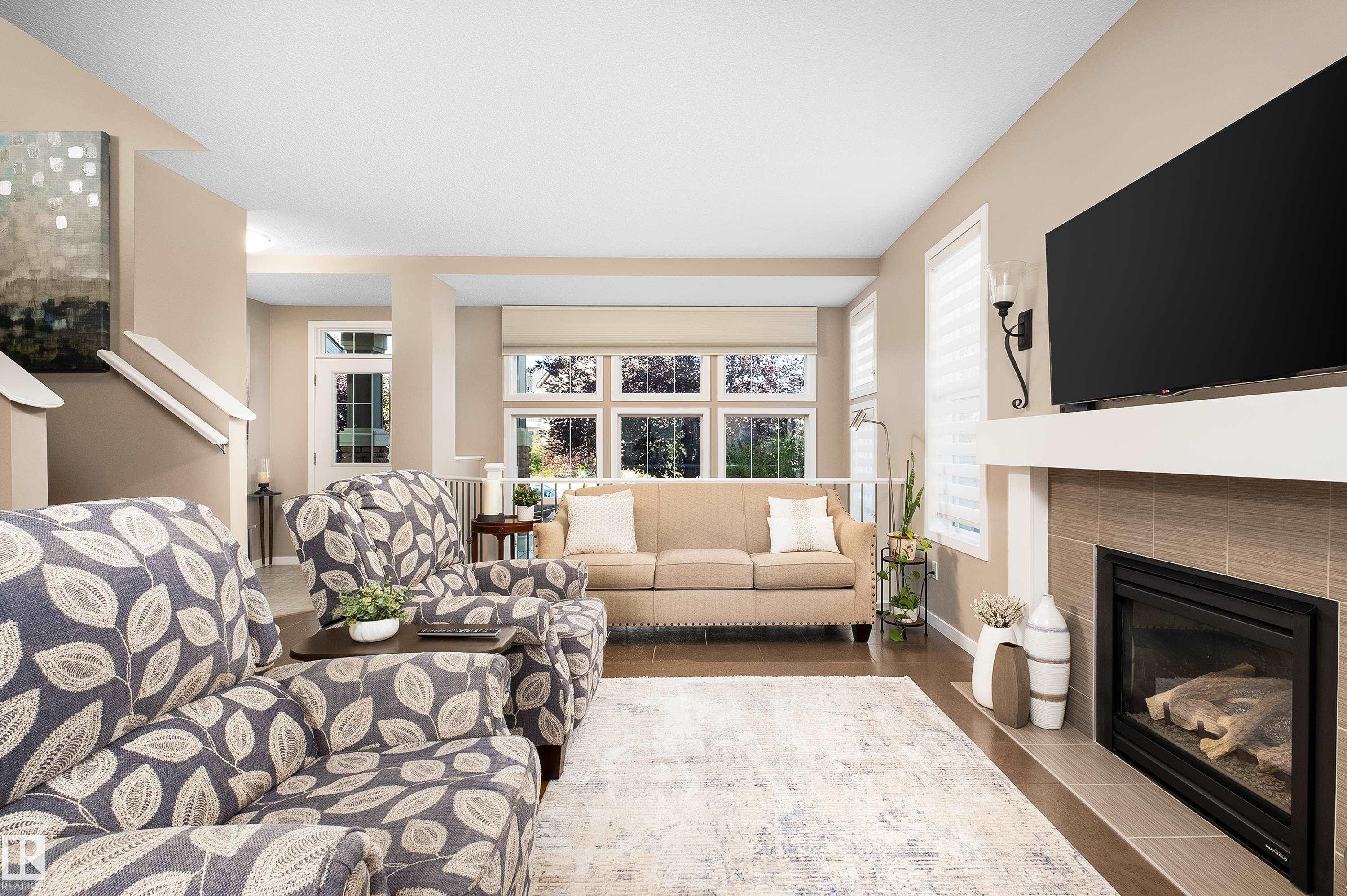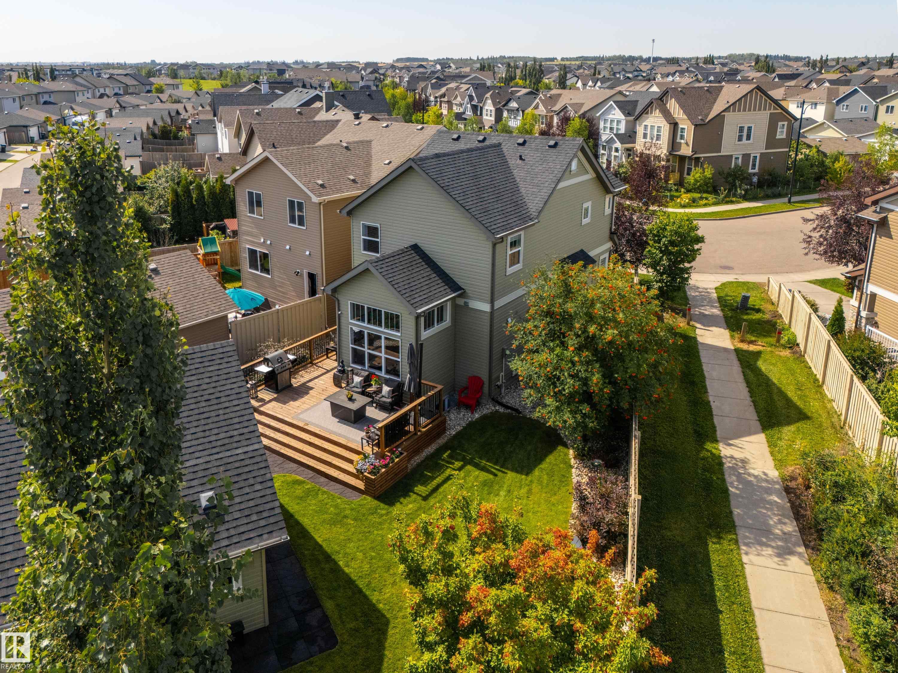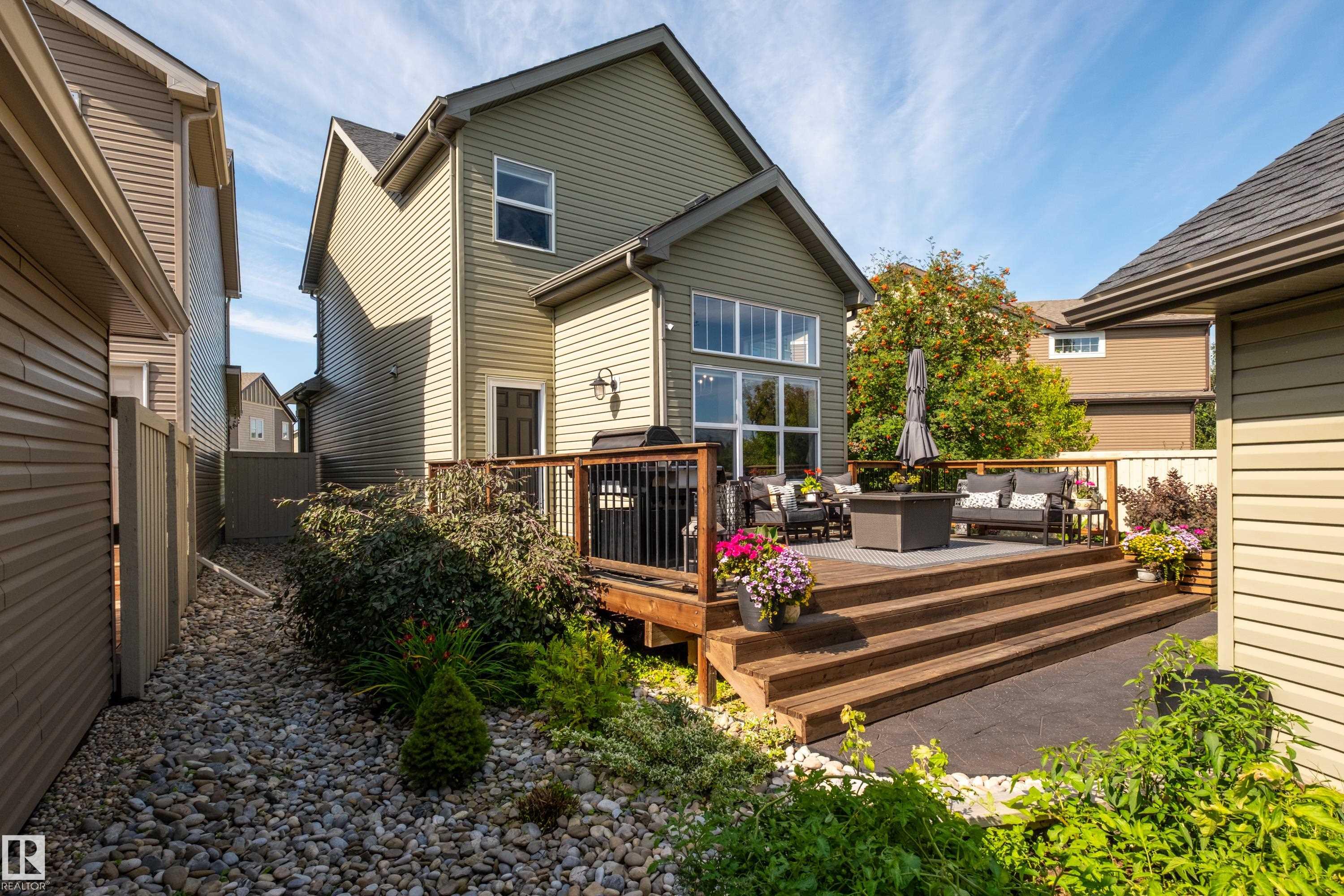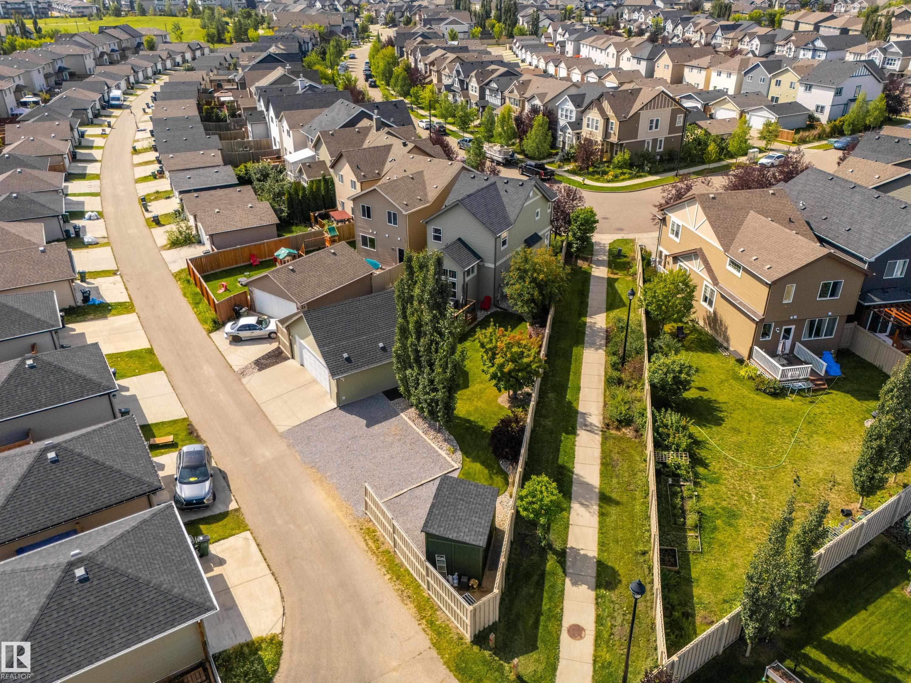 Welcome to this stunning 2-storey home in the heart of Allard, thoughtfully designed for modern living. With 3 spacious bedrooms upstairs and 2.5 baths, it offers a perfect balance of style and function. The main floor is highlighted by upgraded cork flooring, a cozy gas fireplace, and expansive windows that fill the space with natural light. The partially finished basement provides additional living space with an impressive open-to-above design. Outside, the pie-shaped yard is a private retreat—fully lands...