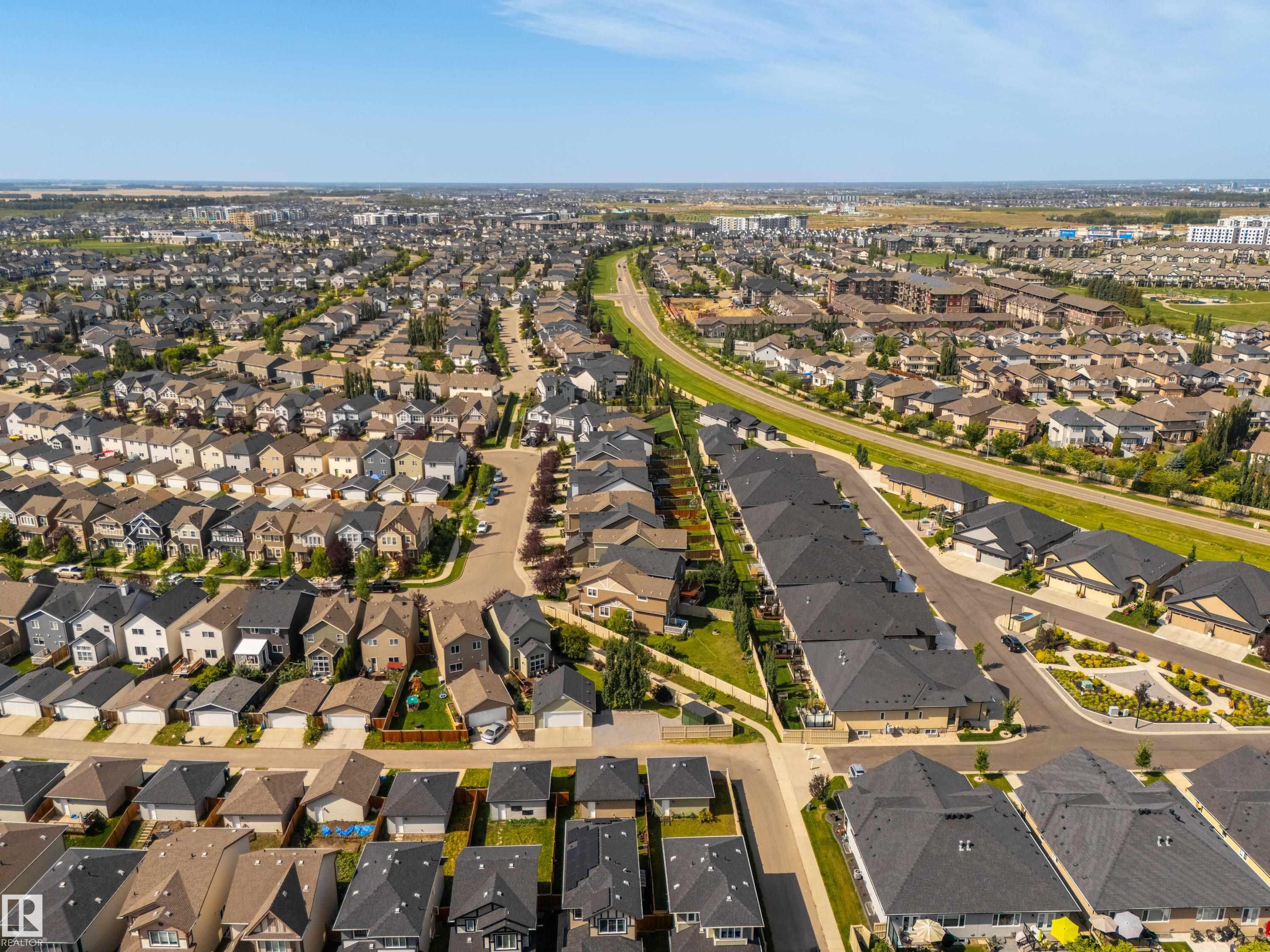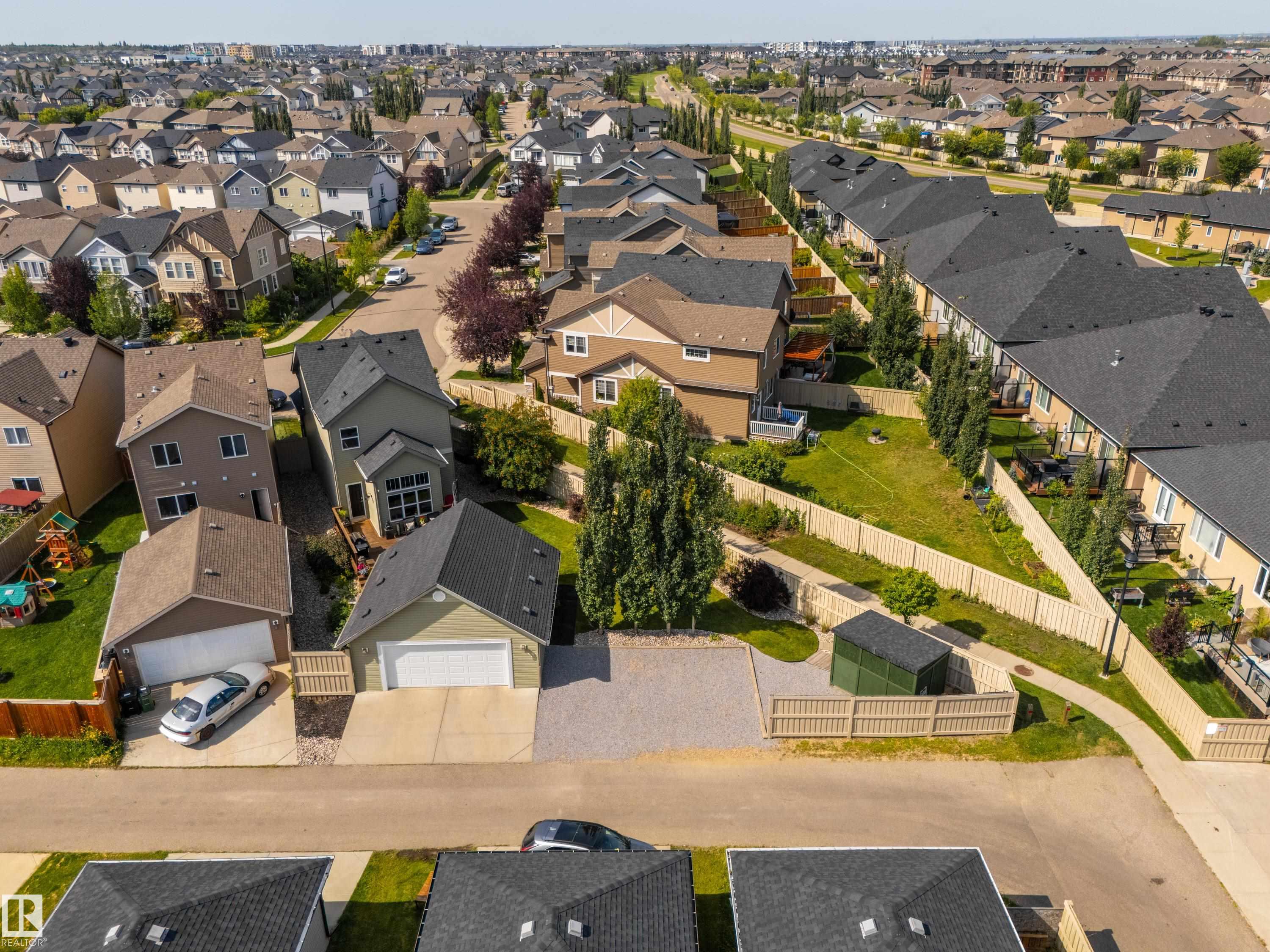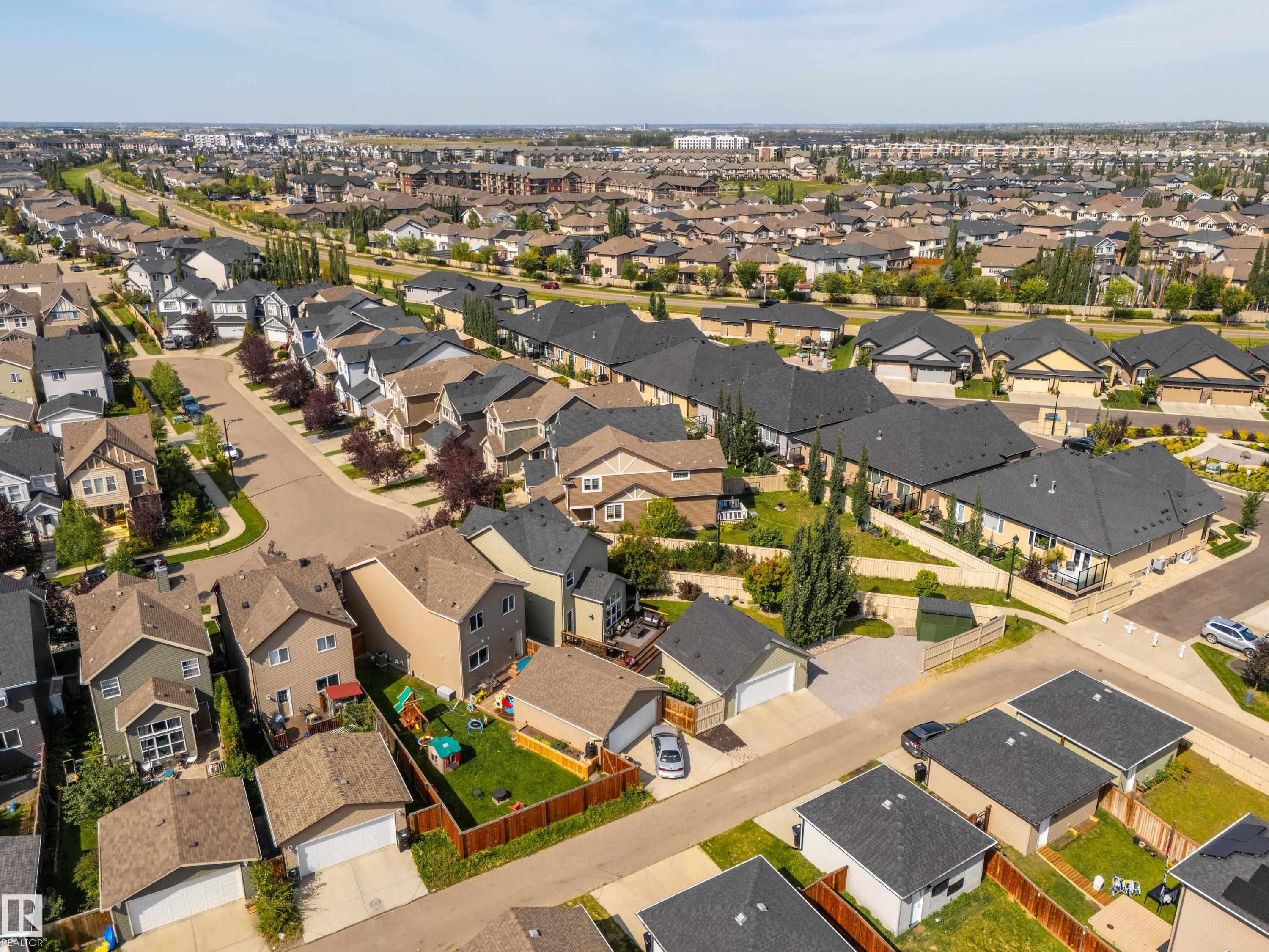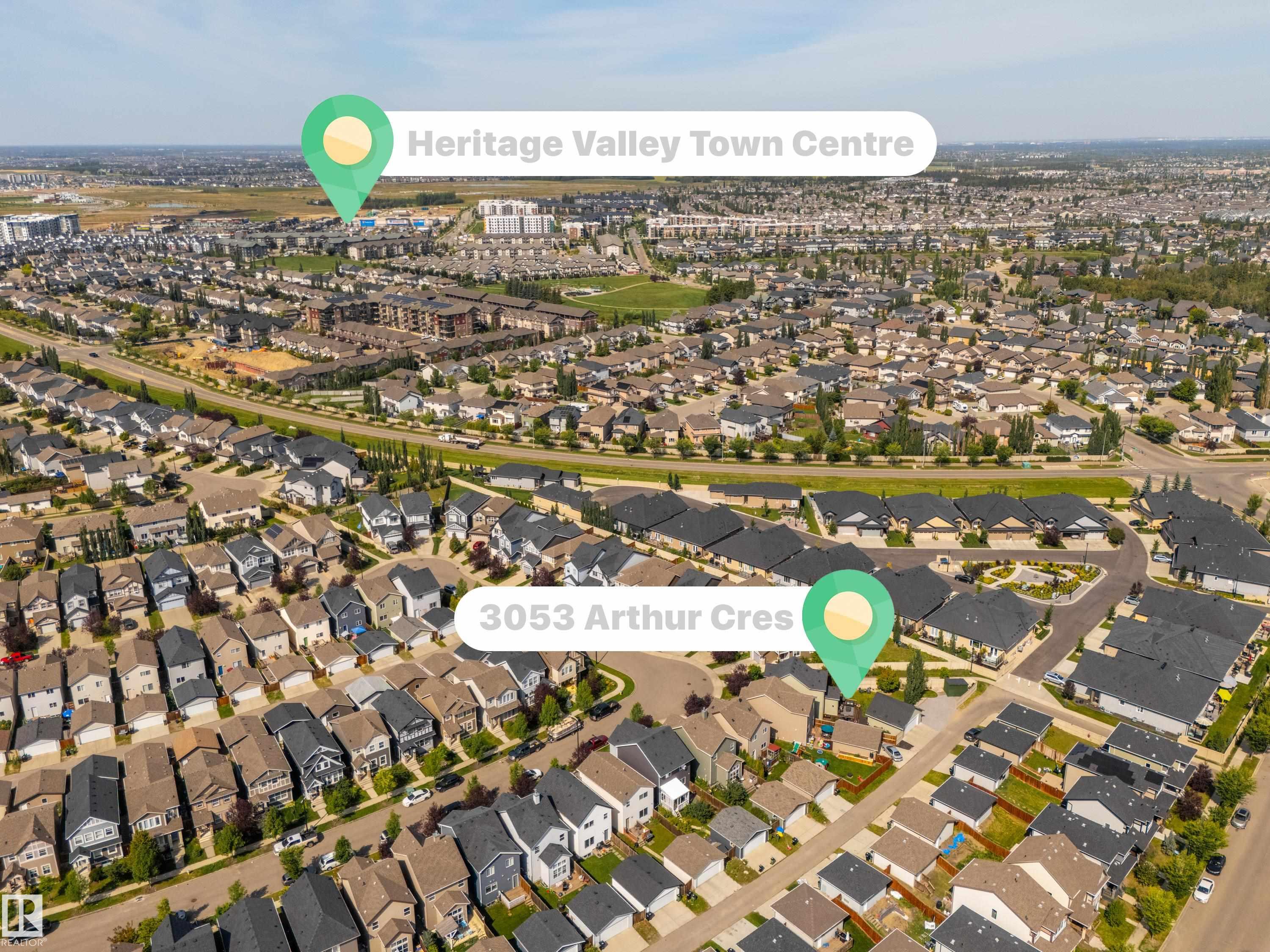 Welcome to this stunning 2-storey home in the heart of Allard, thoughtfully designed for modern living. With 3 spacious bedrooms upstairs and 2.5 baths, it offers a perfect balance of style and function. The main floor is highlighted by upgraded cork flooring, a cozy gas fireplace, and expansive windows that fill the space with natural light. The partially finished basement provides additional living space with an impressive open-to-above design. Outside, the pie-shaped yard is a private retreat—fully lands...