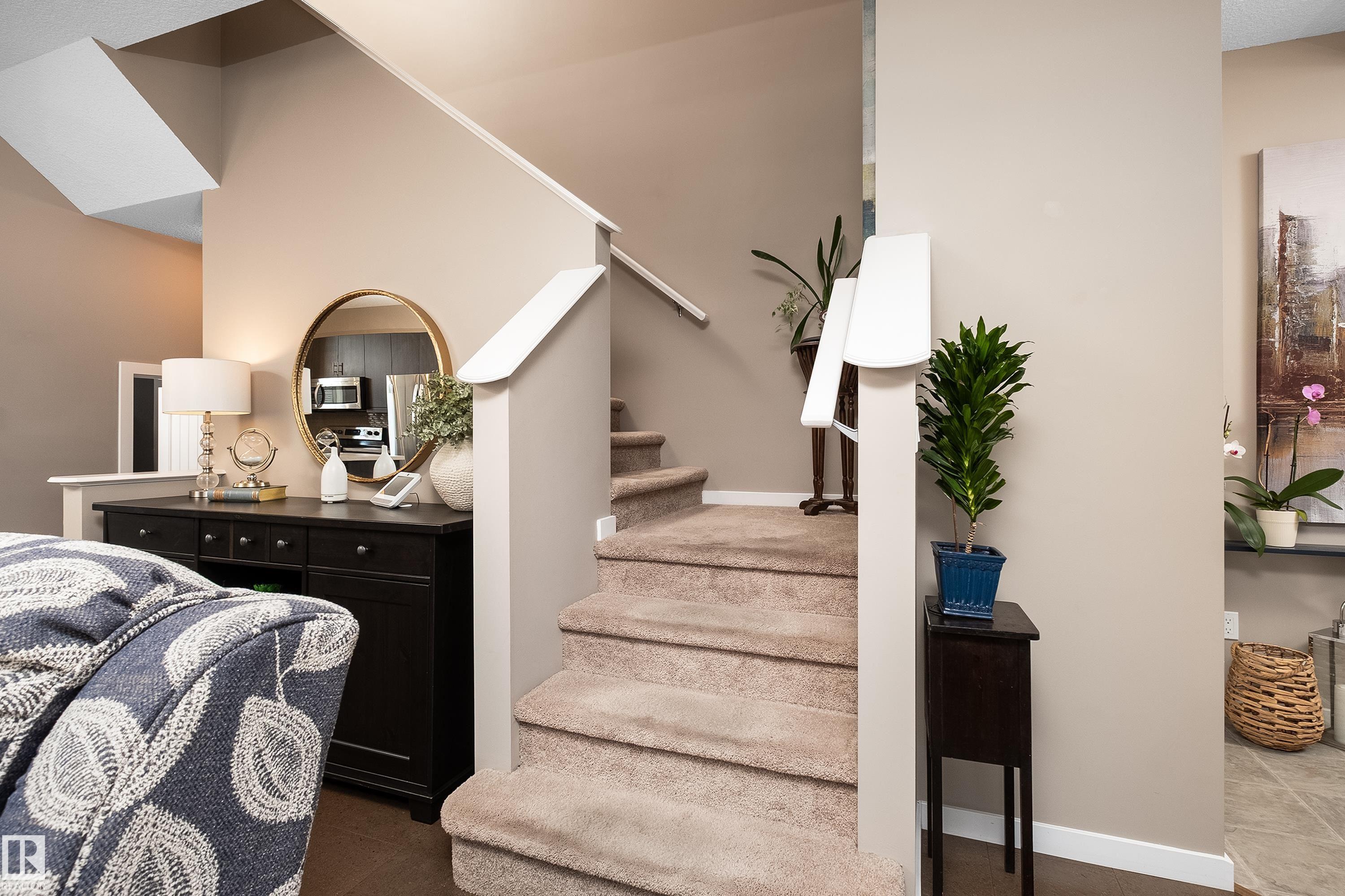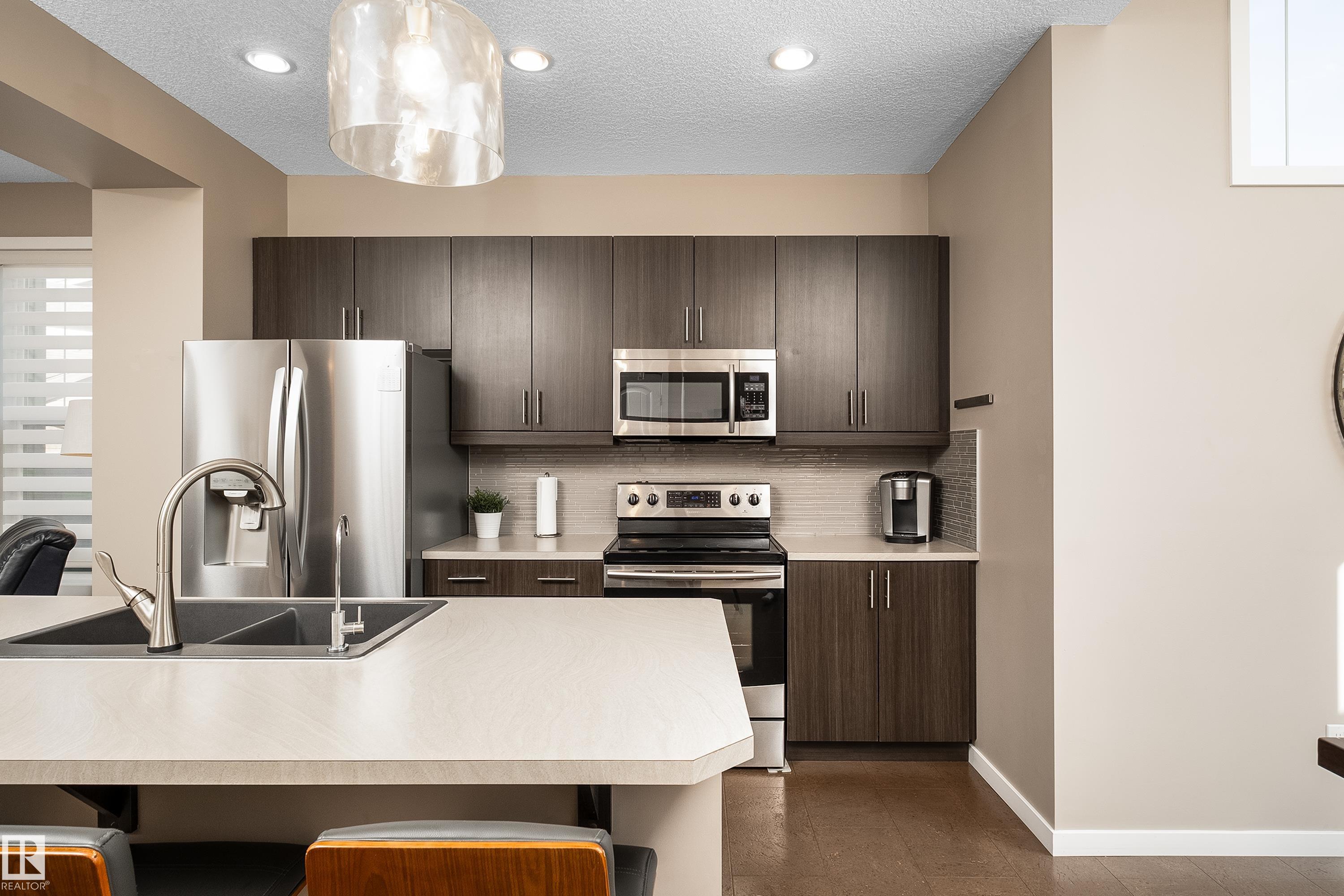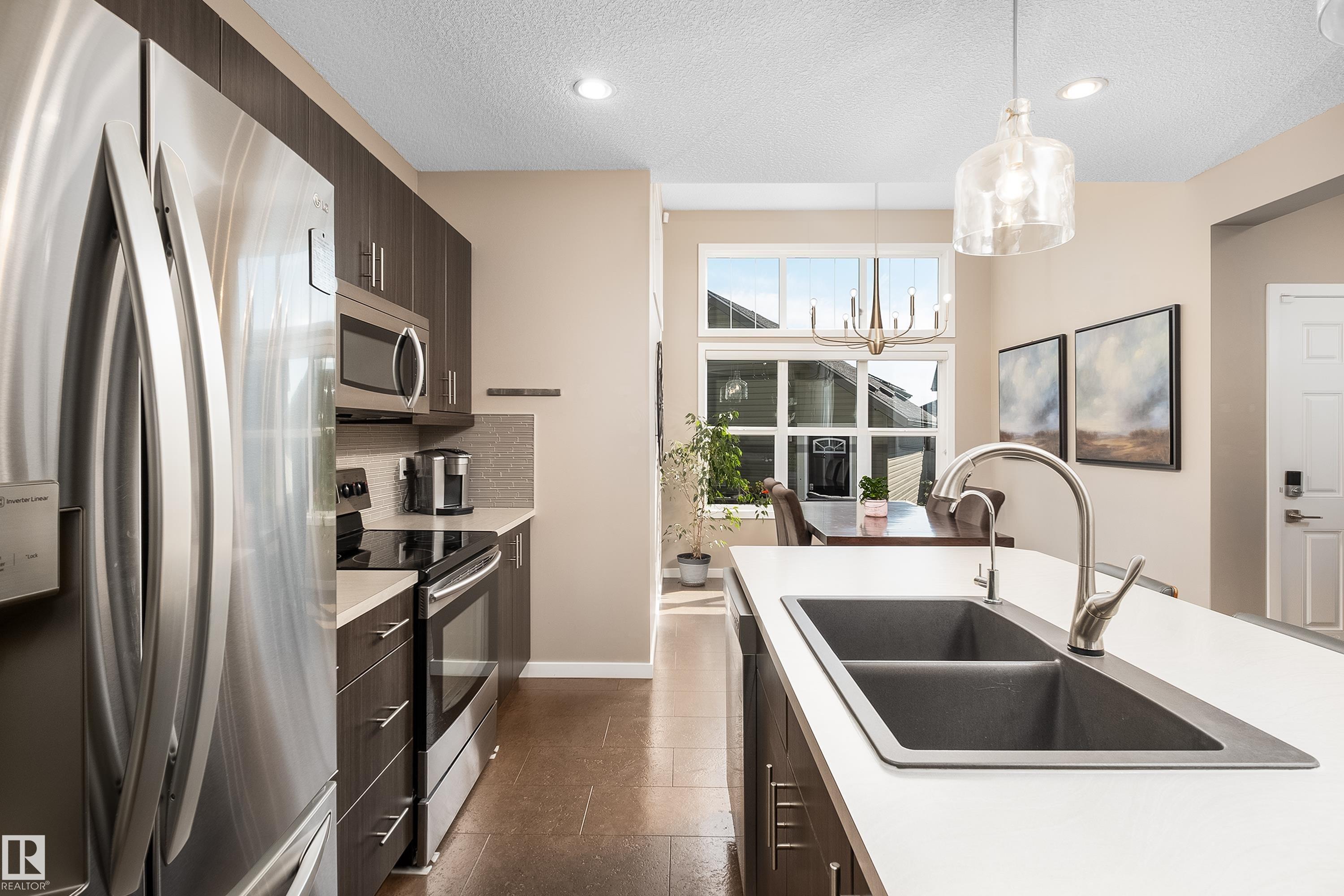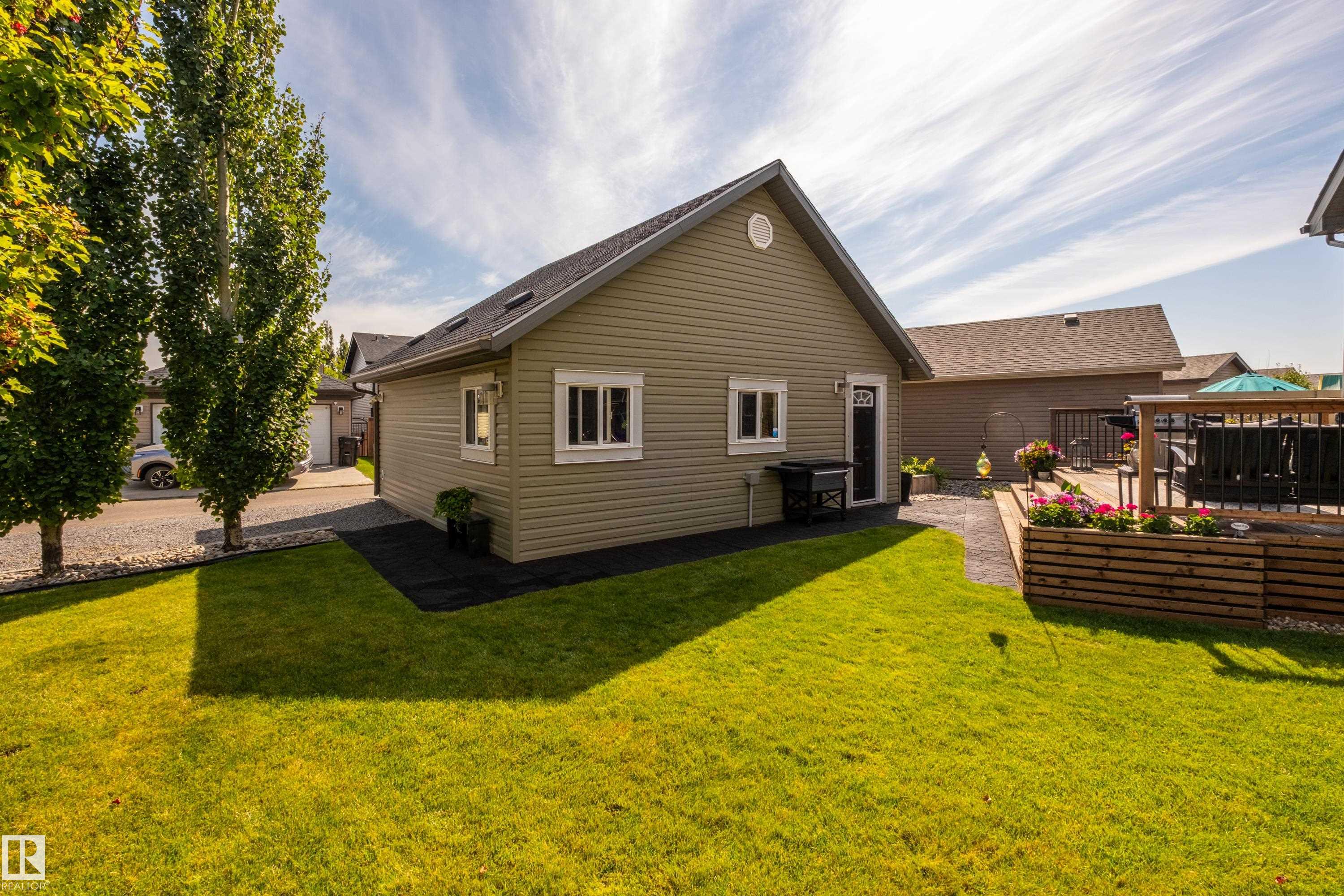 Welcome to this stunning 2-storey home in the heart of Allard, thoughtfully designed for modern living. With 3 spacious bedrooms upstairs and 2.5 baths, it offers a perfect balance of style and function. The main floor is highlighted by upgraded cork flooring, a cozy gas fireplace, and expansive windows that fill the space with natural light. The partially finished basement provides additional living space with an impressive open-to-above design. Outside, the pie-shaped yard is a private retreat—fully lands...
