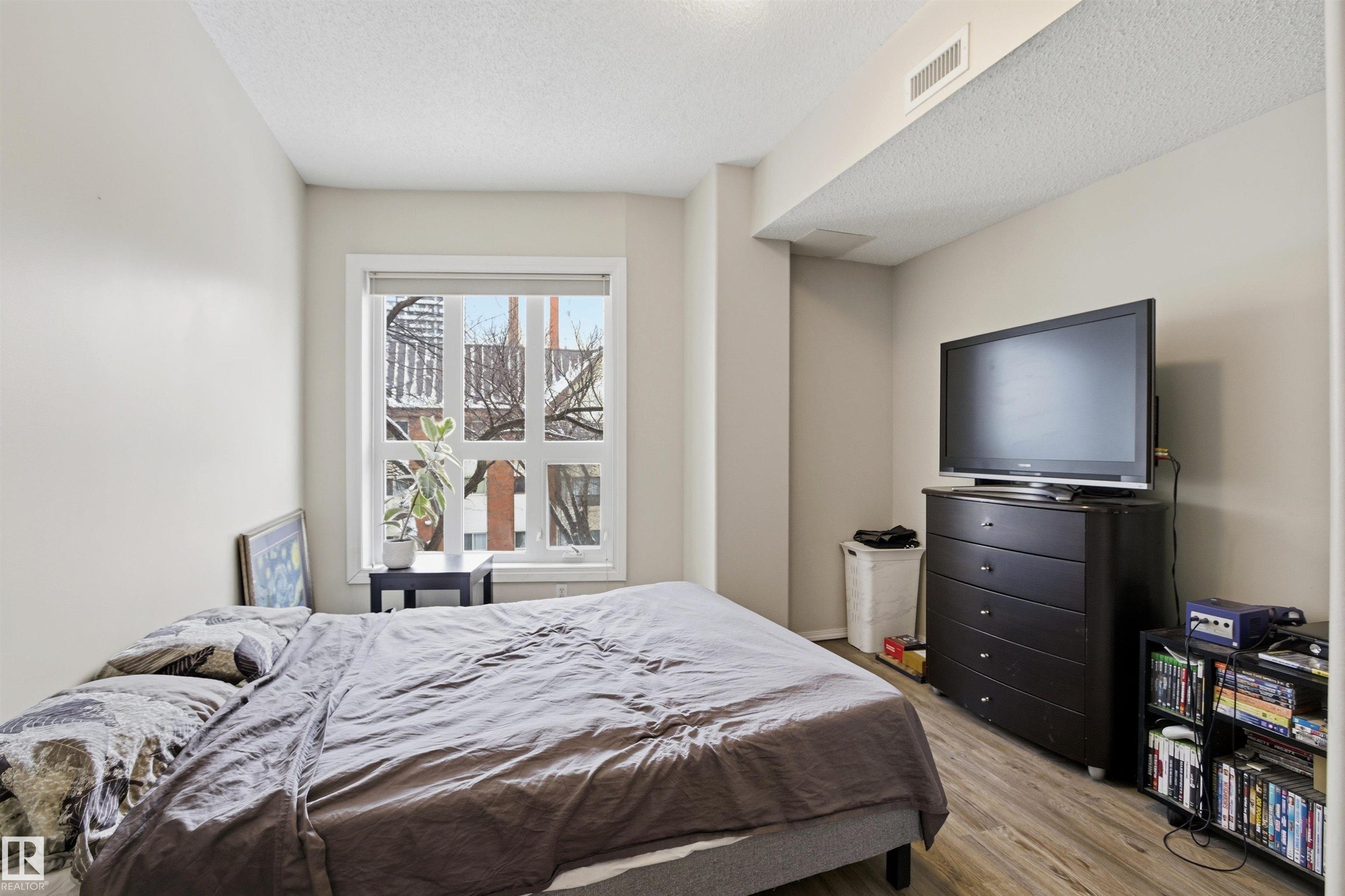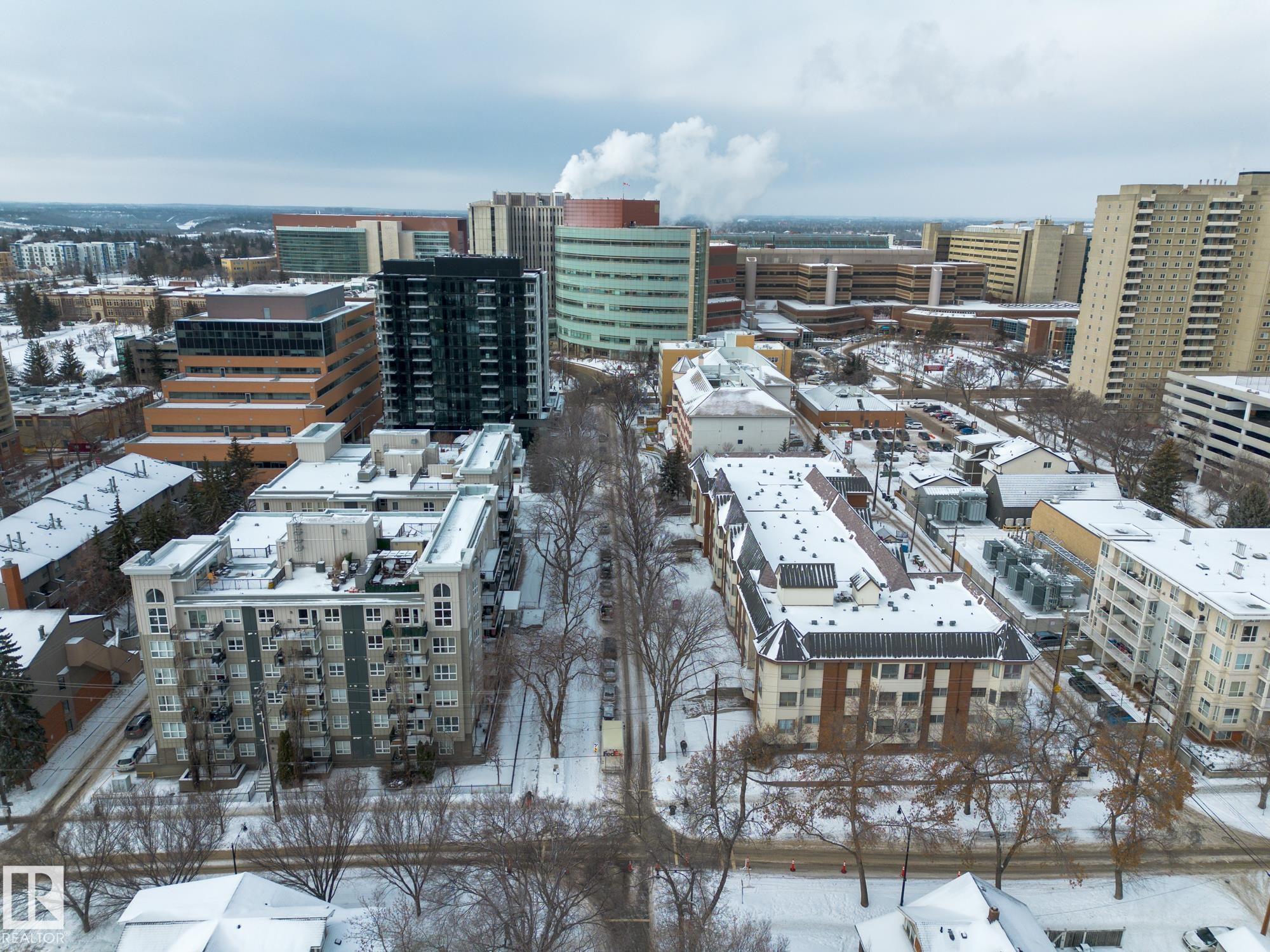 Welcome to this solid concrete condo perfectly located just steps from the University of Alberta and its world-class hospital, offering unbeatable convenience on a peaceful, tree-lined street. Inside, enjoy 9-foot ceilings, classic white kitchen, stainless steel appliances, and the cozy charm of a corner gas fireplace. The spacious primary bedroom features a stunning oversized window framing views of majestic elm trees, along with a walkthrough closet and a private 4-piece ensuite. The second bedroom is win...