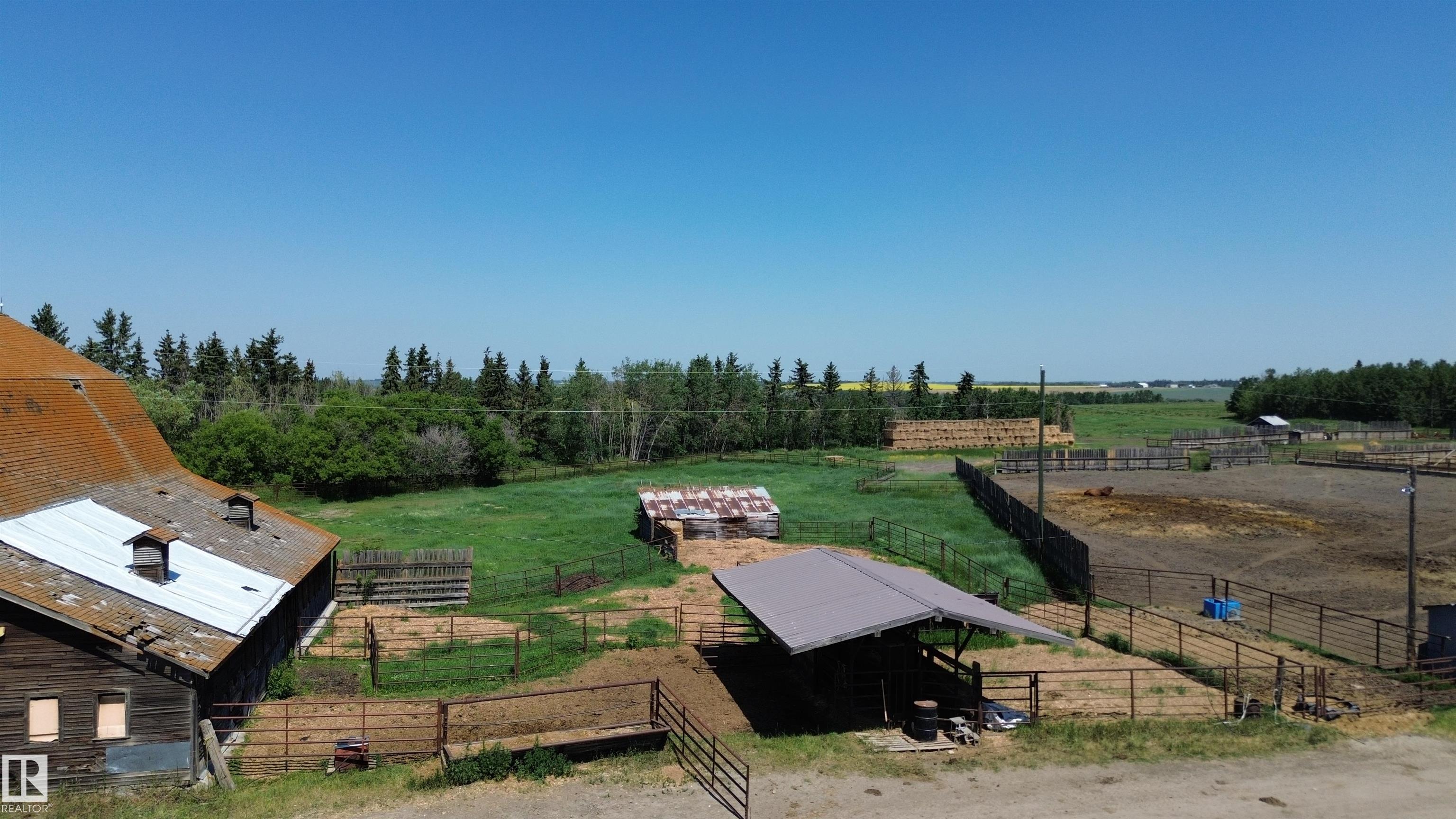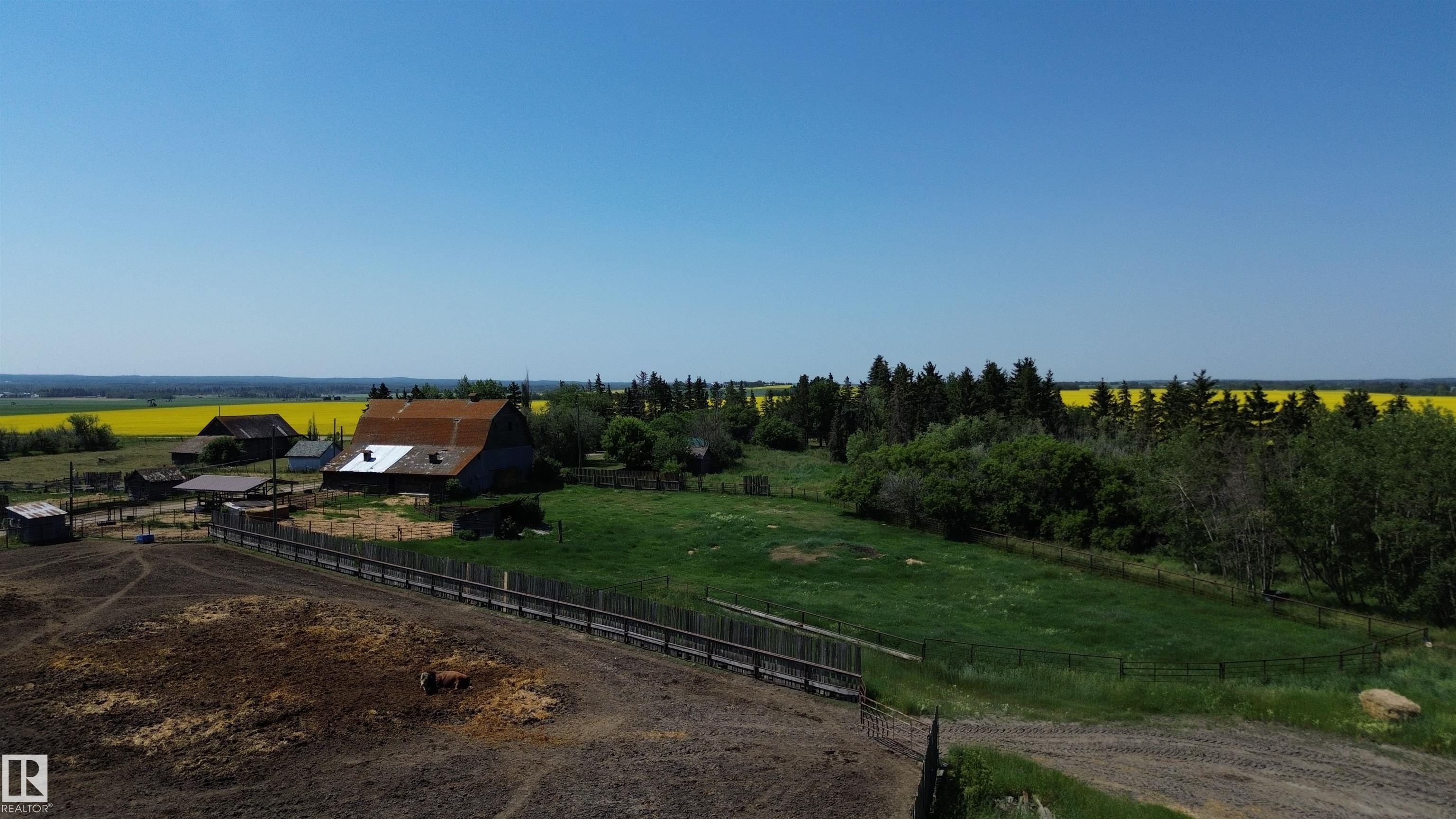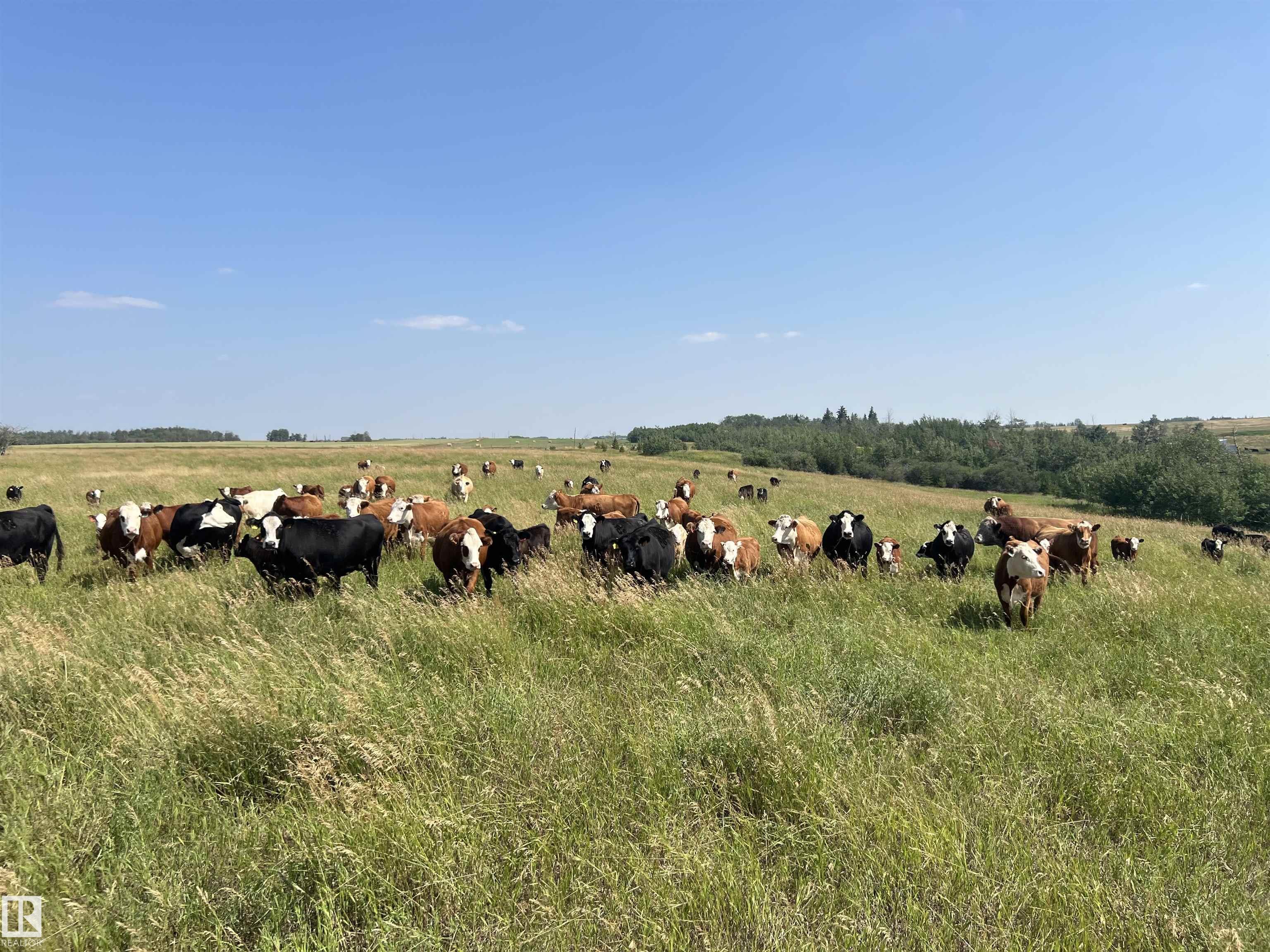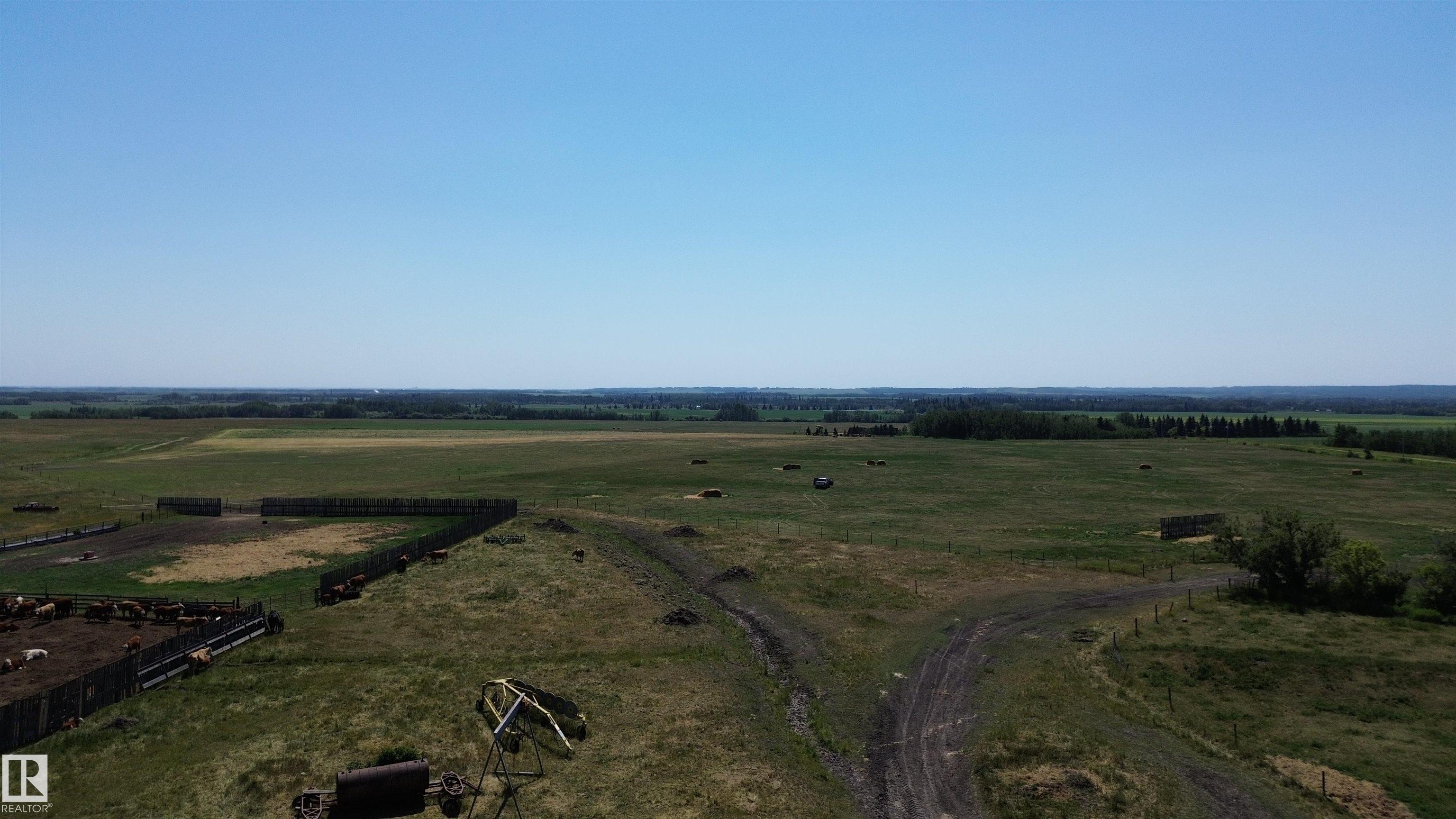 Huge ranching opportunity of FOUR QUARTERS near St. Albert! 639.75 ACRES of a working regenerative farm, set up with a confined feeding operation and part of ALUS conservation with a transferable NRCB permit! The home quarter has an old house and barn as well as a shop, granaries, seven fenced feeding pens, sheds and two dugouts. There are three drilled wells total, the best well producing 30 GPM out of the Villeneuve aquifer. Cattle are on rotational grazing with electric fencing and part of the verified b...