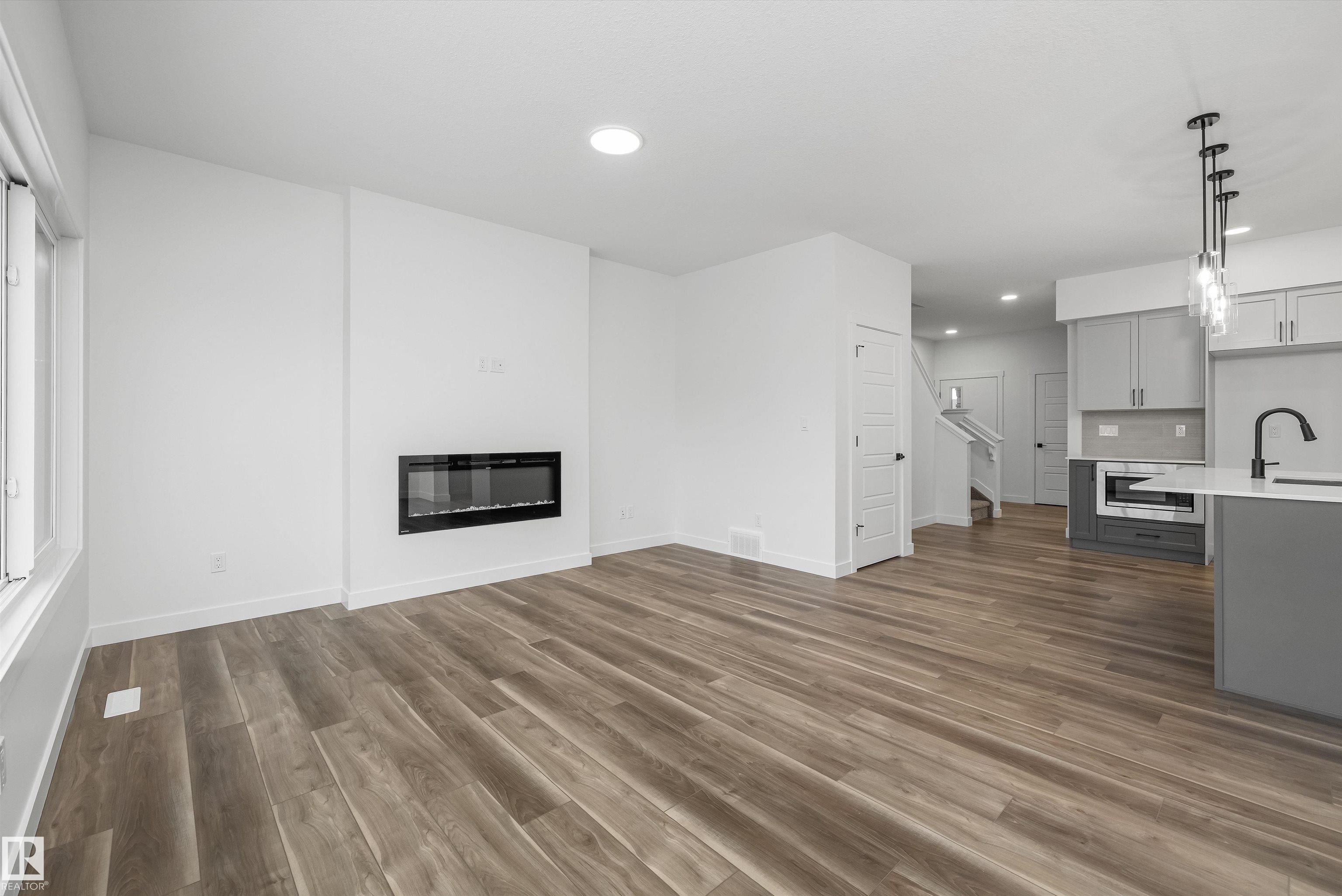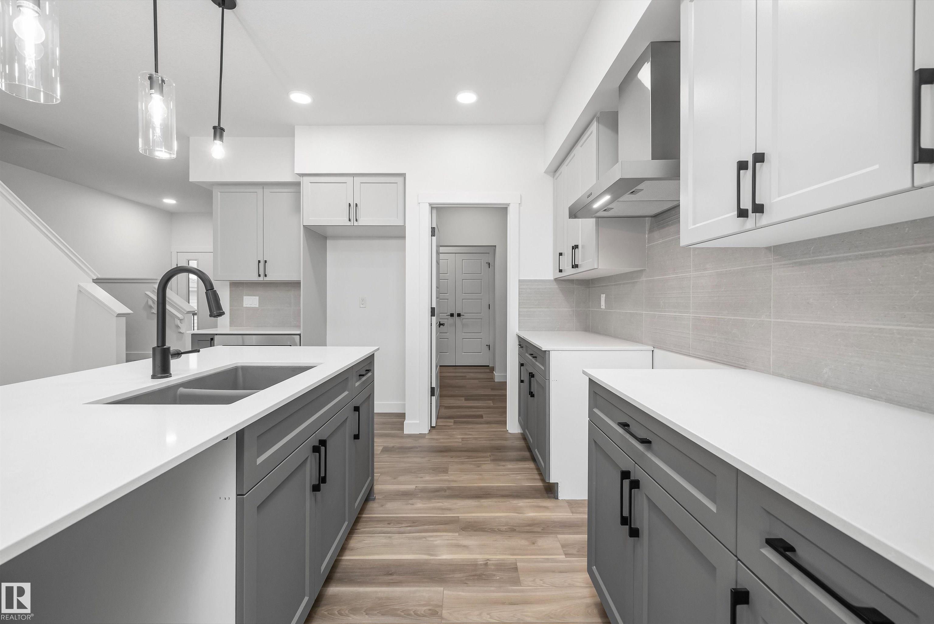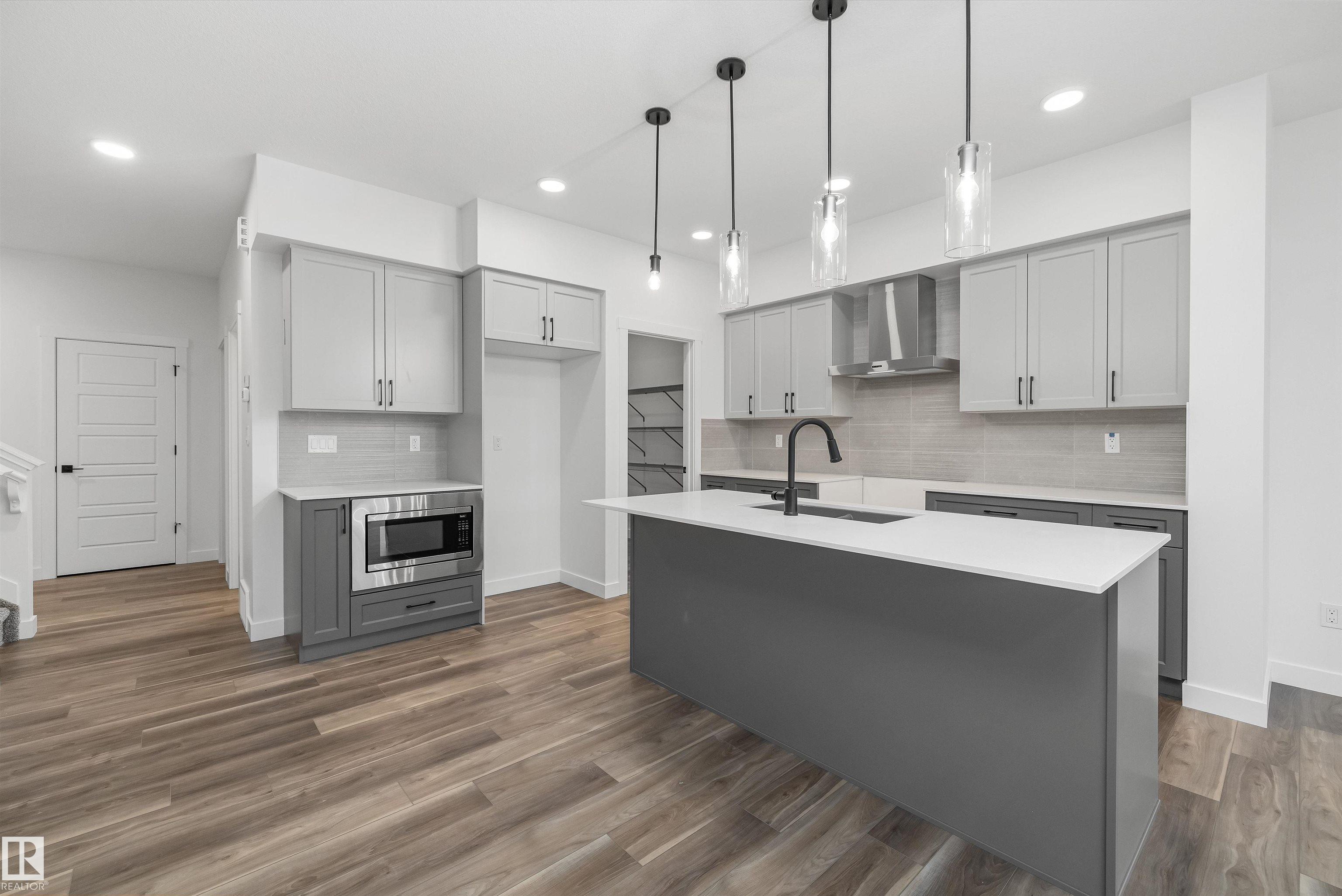 Built by Sterling Homes, this beautifully finished front-attached home in College Woods at Lakeview offers bright, refined living surrounded by trees, trails, and peaceful green space. Triple pane windows and 9’ ceilings create an airy main floor where a welcoming foyer leads past a half bath into a stylish kitchen featuring quartz countertops, a large island with seating, ceiling-height cabinetry, chimney hood fan, built-in microwave, and full-height tile backsplash. A walk-through pantry connects to the m...